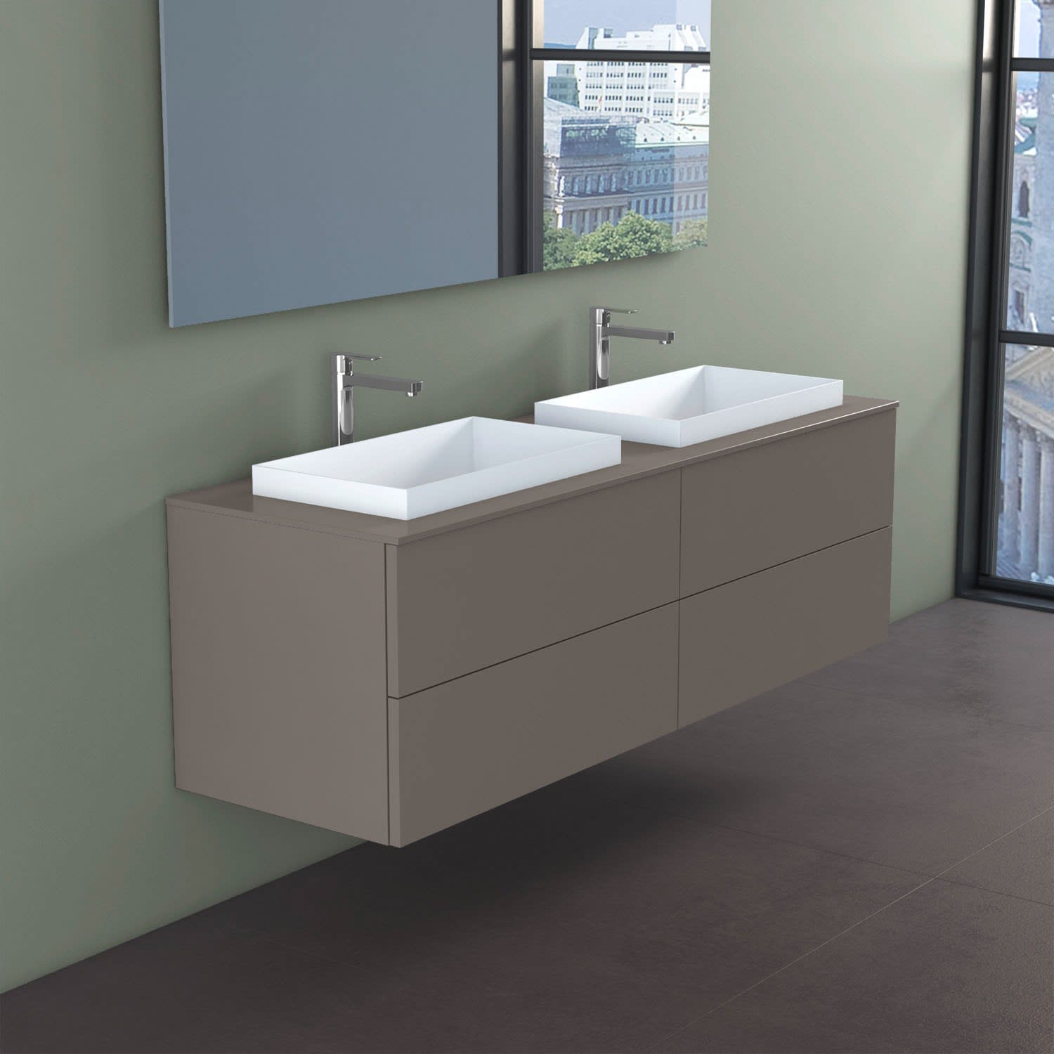 progettobagno Elba Doppel-Unterschrank 160 cm mit Glasplatte ohne Hahnlochbohrung und ELY 60 Einbauwaschtischen