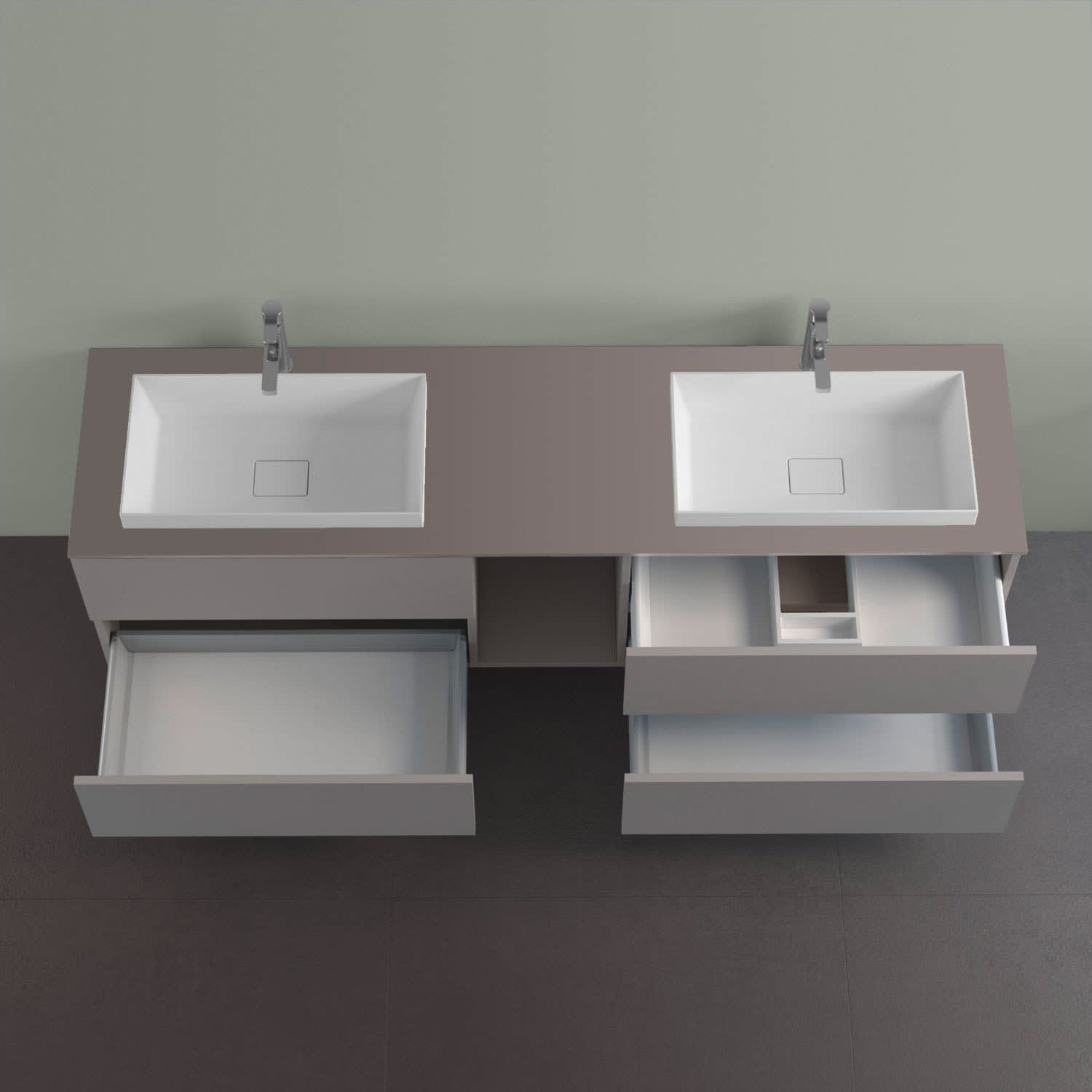 progettobagno Elba Doppel-Unterschrank 190 cm mit Glasplatte, Hahnlochbohrung und ELY 60 Einbauwaschtischen