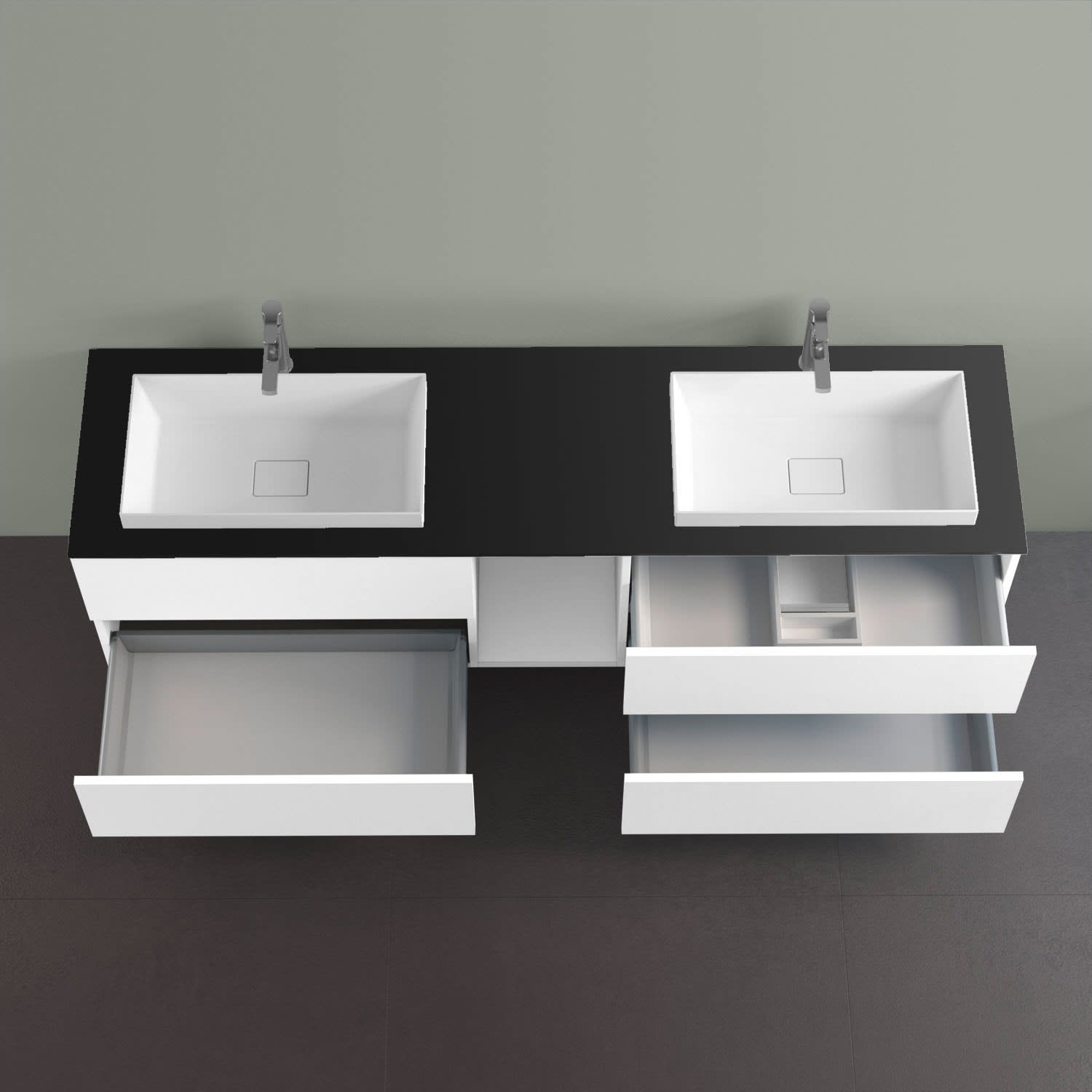progettobagno Elba Doppel-Unterschrank 190 cm mit Glasplatte ohne Hahnlochbohrung und ELY 60 Einbauwaschtischen