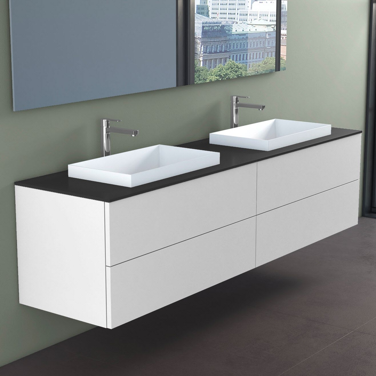 progettobagno Elba Doppel-Unterschrank 200 cm mit Glasplatte, Hahnlochbohrung und ELY 60 Einbauwaschtischen