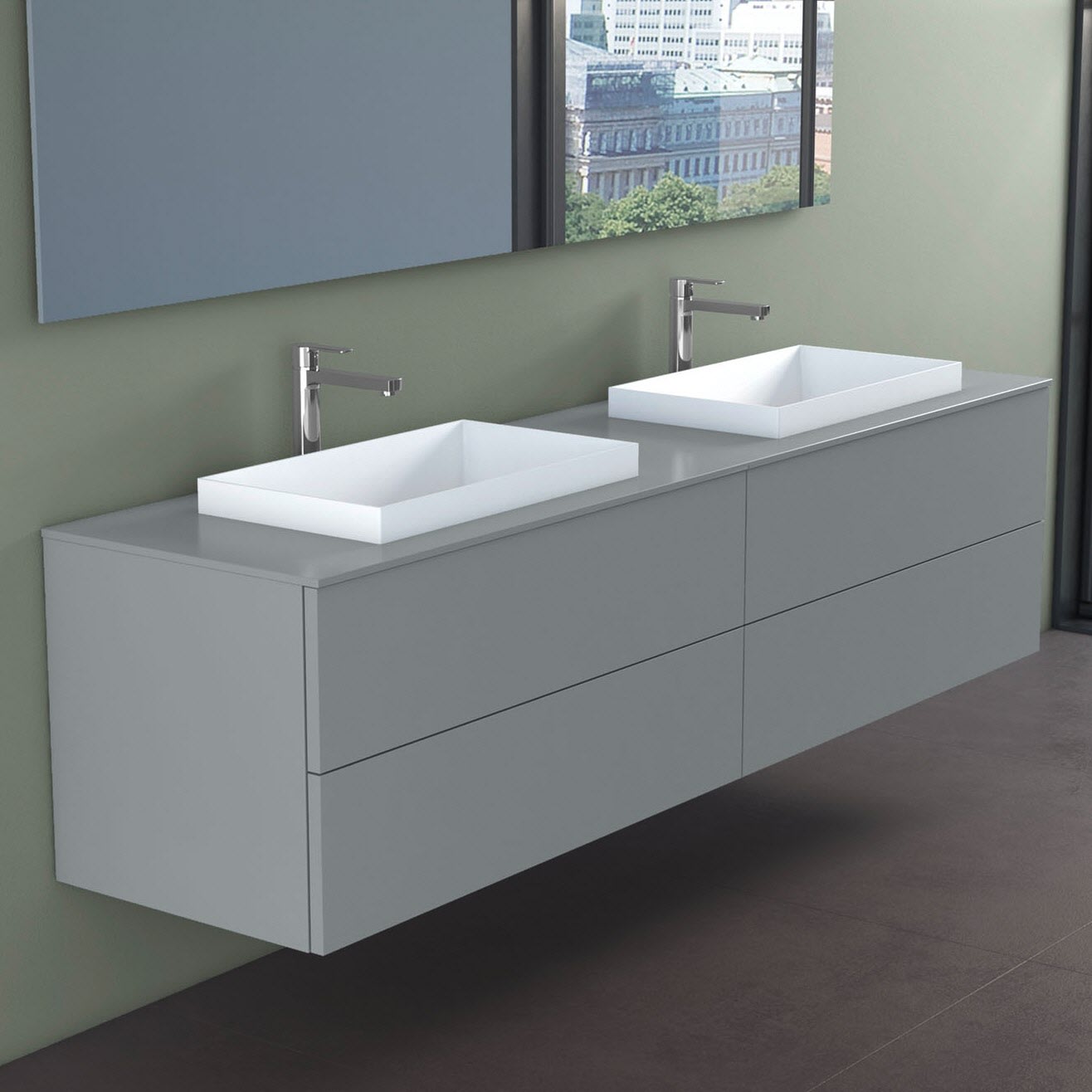 progettobagno Elba Doppel-Unterschrank 200 cm mit Glasplatte, Hahnlochbohrung und ELY 60 Einbauwaschtischen