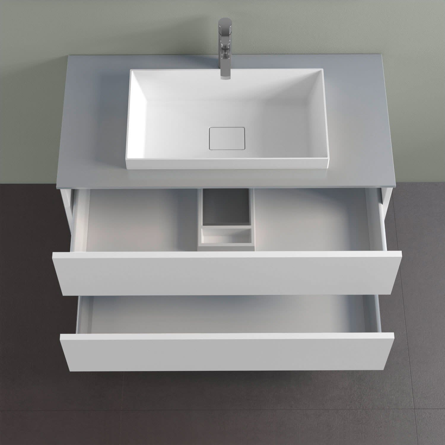 progettobagno Elba Unterschrank 100 cm mit Glasplatte, Hahnlochbohrung und ELY 60 Einbauwaschtisch