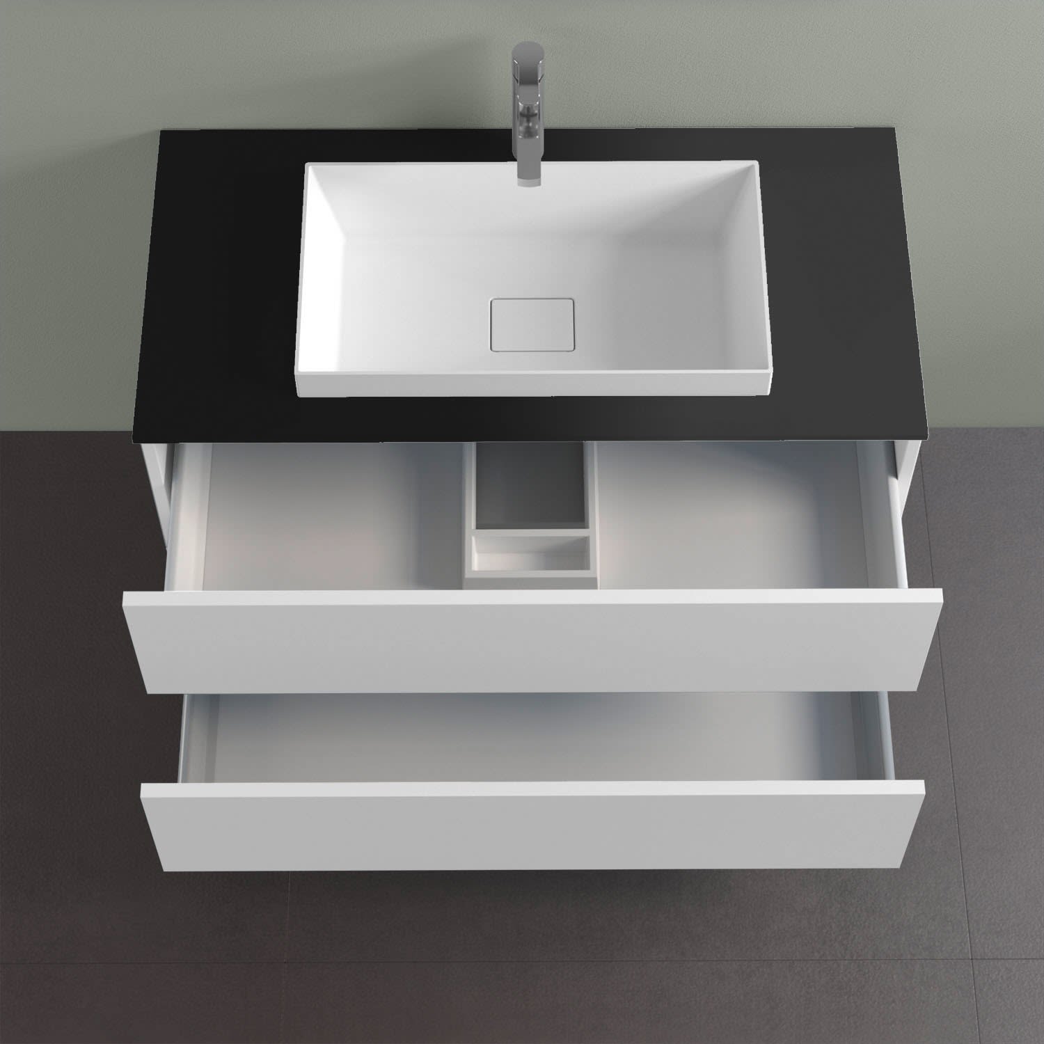 progettobagno Elba Unterschrank 100 cm mit Glasplatte ohne Hahnlochbohrung und ELY 60 Einbauwaschtisch