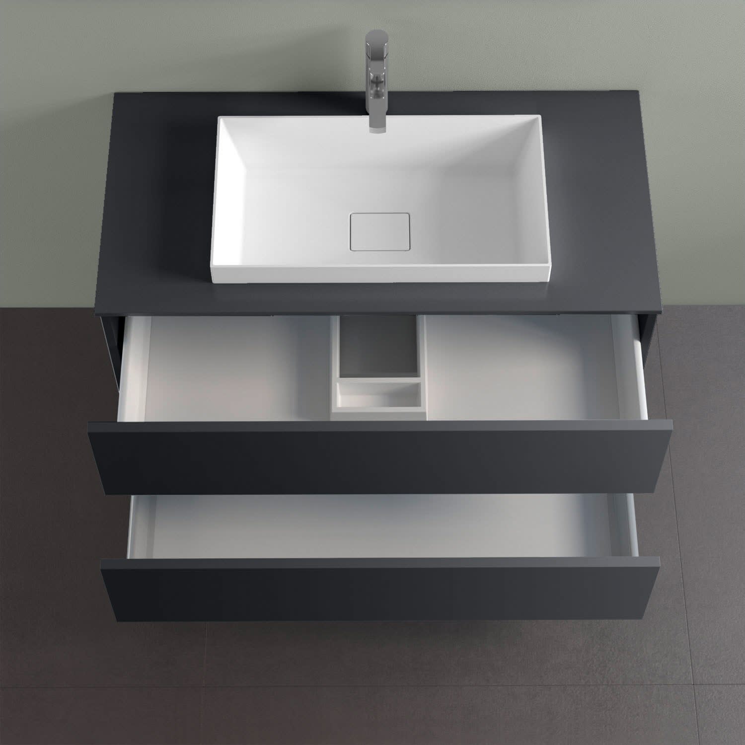 progettobagno Elba Unterschrank 100 cm mit Glasplatte ohne Hahnlochbohrung und ELY 60 Einbauwaschtisch