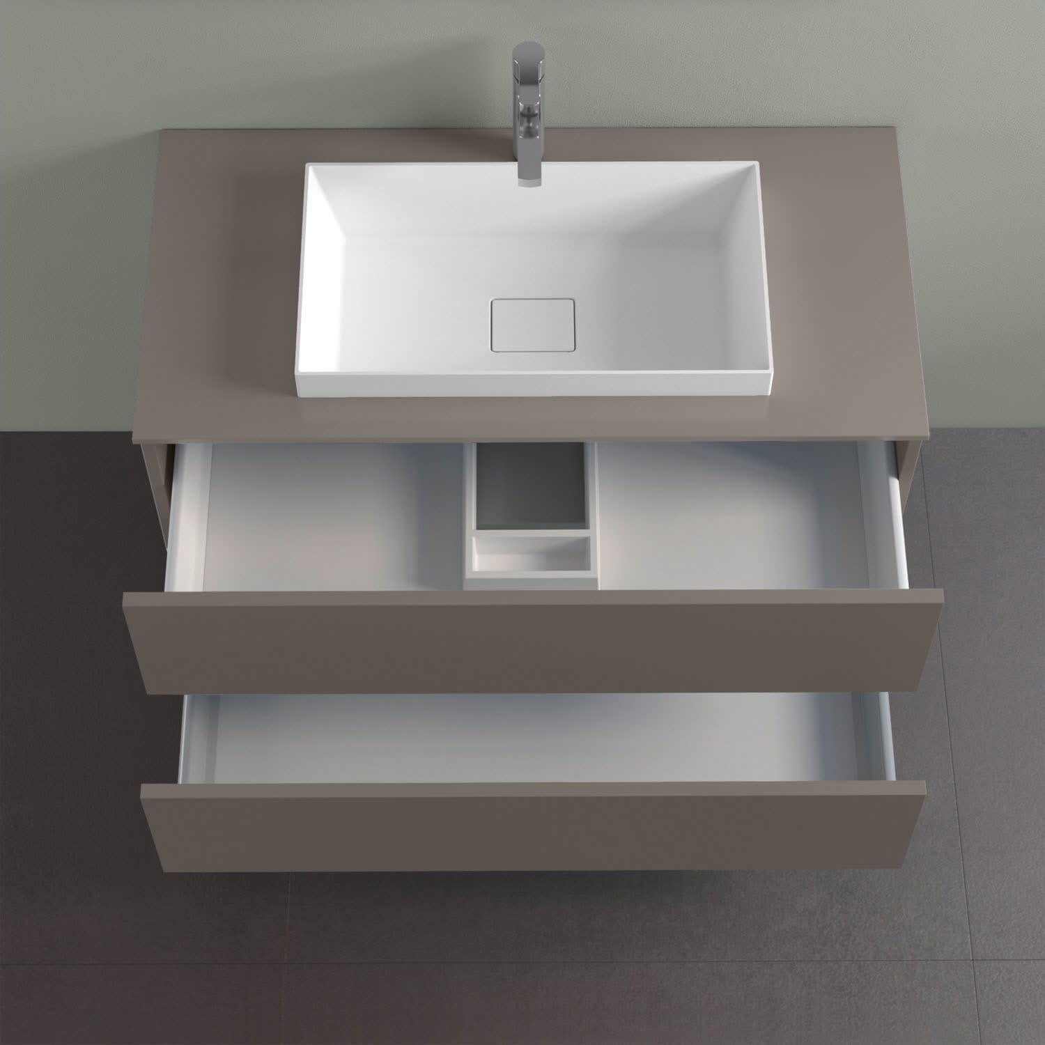 progettobagno Elba Unterschrank 100 cm mit Glasplatte ohne Hahnlochbohrung und ELY 60 Einbauwaschtisch