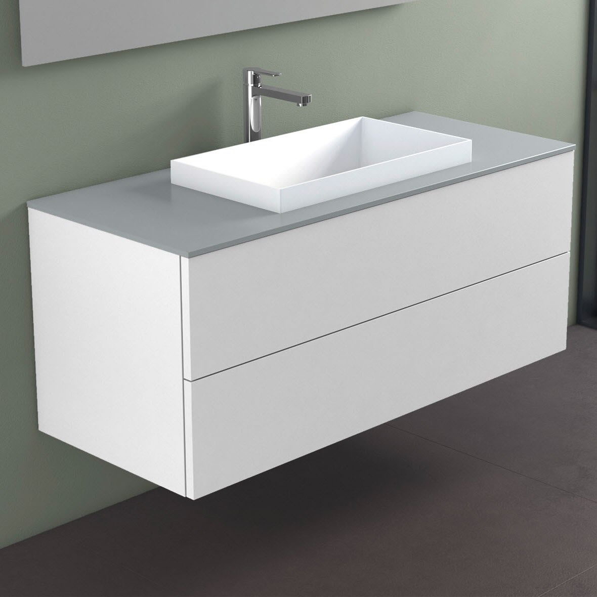 progettobagno Elba Unterschrank 120 cm mit Glasplatte, Hahnlochbohrung und ELY 60 Einbauwaschtisch