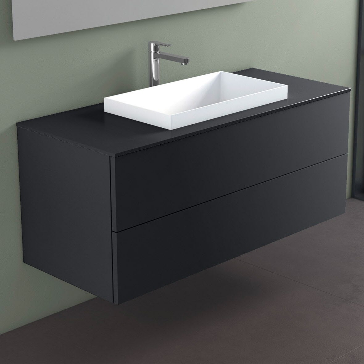 progettobagno Elba Unterschrank 120 cm mit Glasplatte, Hahnlochbohrung und ELY 60 Einbauwaschtisch