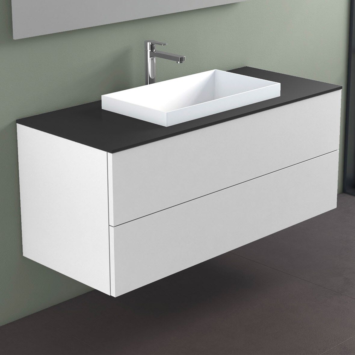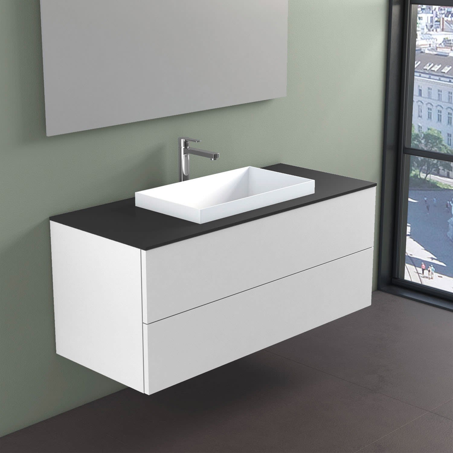 progettobagno Elba Unterschrank 120 cm mit Glasplatte ohne Hahnlochbohrung und ELY 60 Einbauwaschtisch