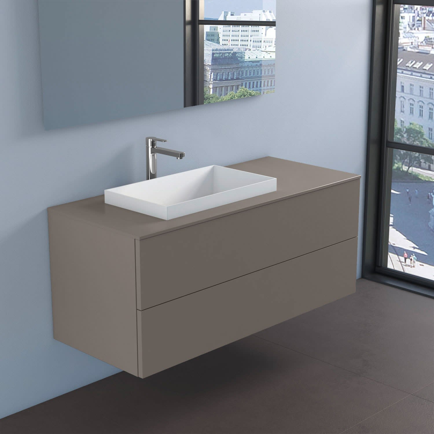 progettobagno Elba Unterschrank 120 cm, Ausführung links mit Glasplatte, Hahnlochbohrung und ELY 60 Einbauwaschtisch