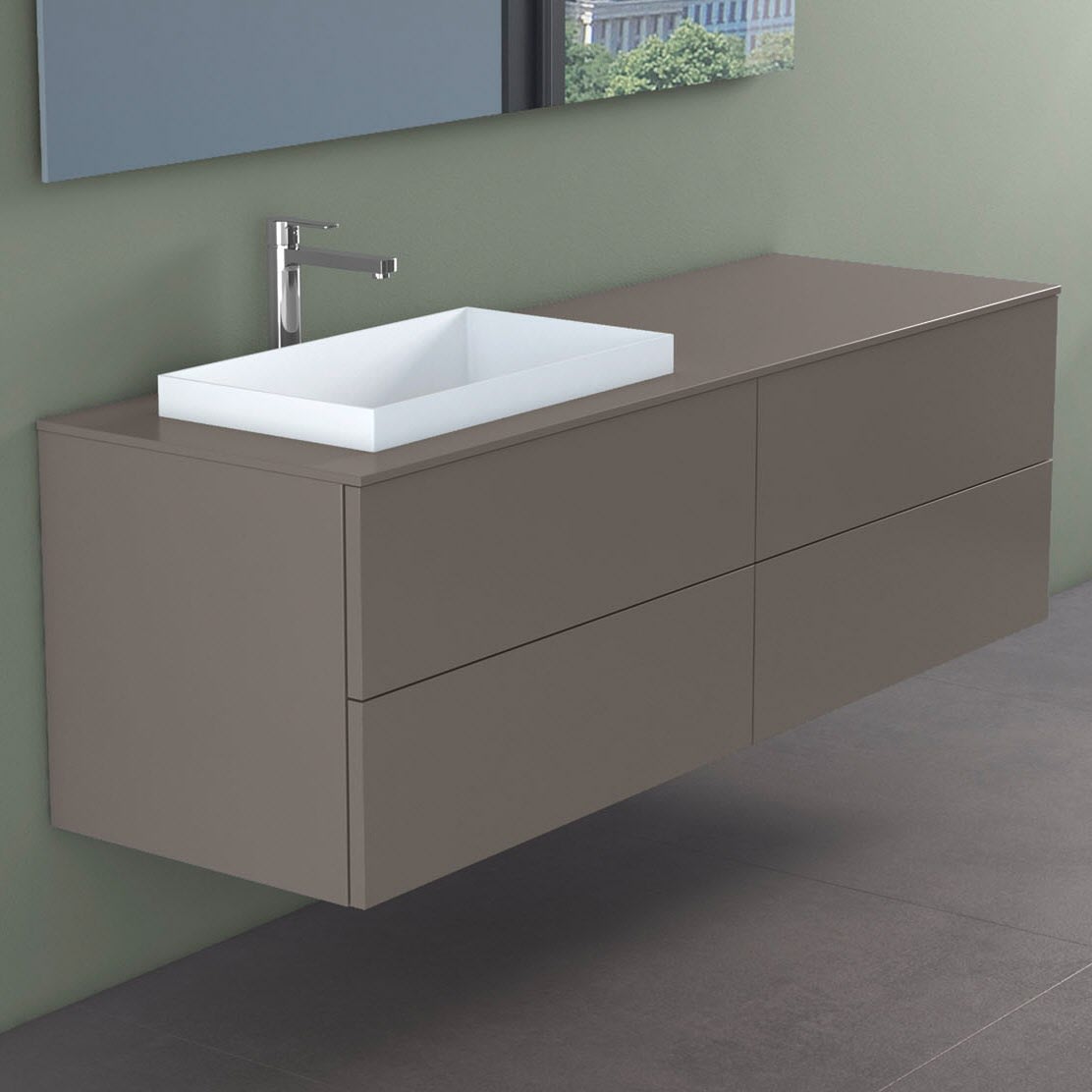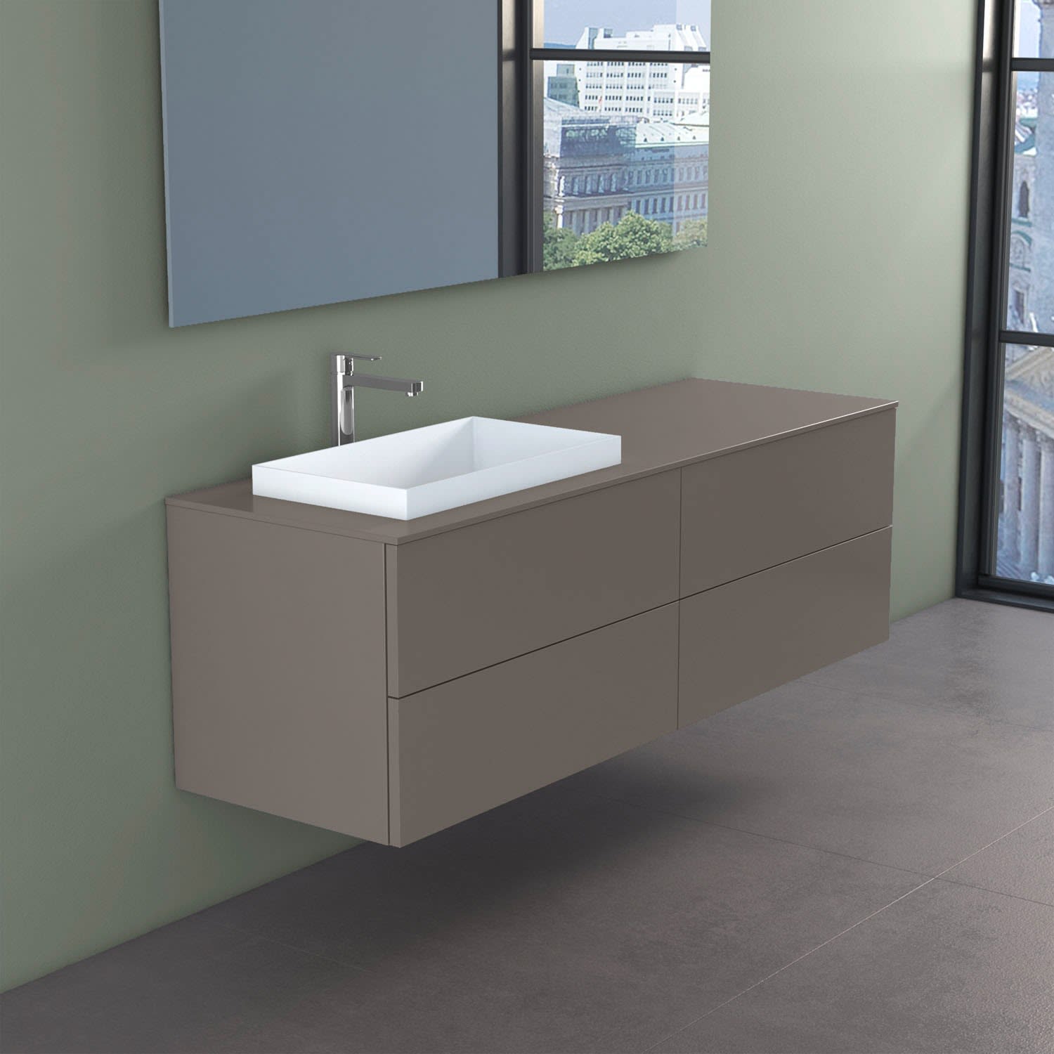 progettobagno Elba Unterschrank 160 cm, Ausführung links mit Glasplatte ohne Hahnlochbohrung und ELY 60 Einbauwaschtisch
