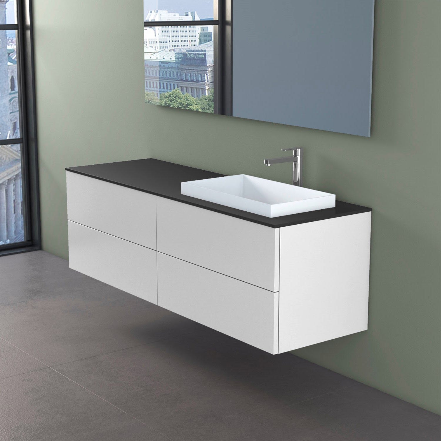 progettobagno Elba Unterschrank 160 cm, Ausführung rechts mit Glasplatte ohne Hahnlochbohrung und ELY 60 Einbauwaschtisch