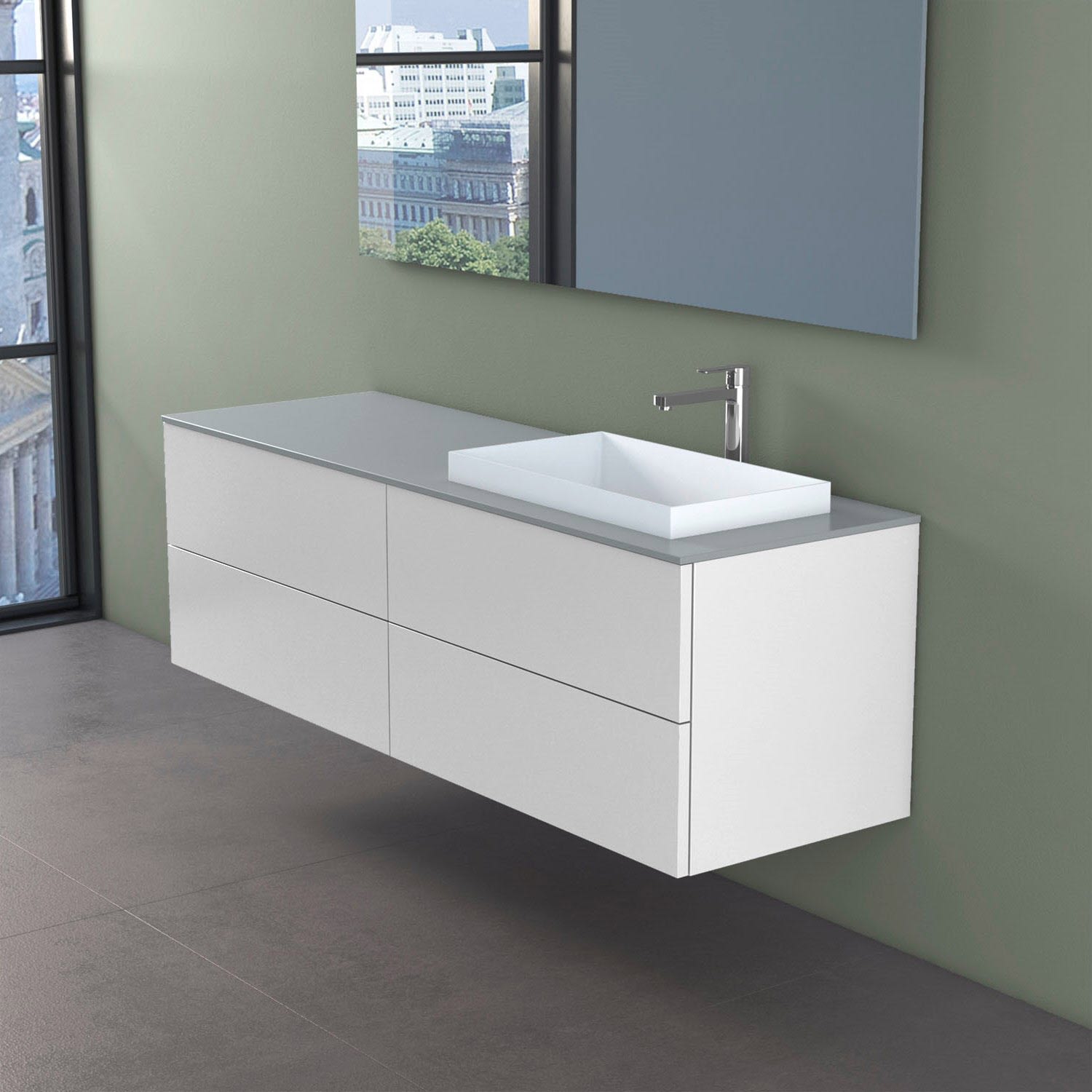 progettobagno Elba Unterschrank 160 cm, Ausführung rechts mit Glasplatte ohne Hahnlochbohrung und ELY 60 Einbauwaschtisch
