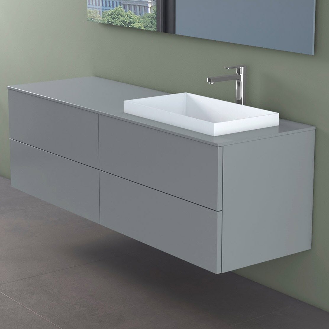 progettobagno Elba Unterschrank 160 cm, Ausführung rechts mit Glasplatte ohne Hahnlochbohrung und ELY 60 Einbauwaschtisch