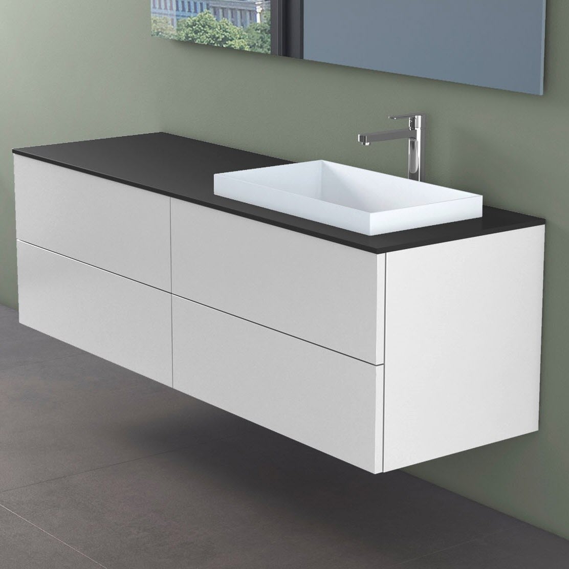 progettobagno Elba Unterschrank 160 cm, Ausführung rechts mit Glasplatte , Hahnlochbohrung und ELY 60 Einbauwaschtisch