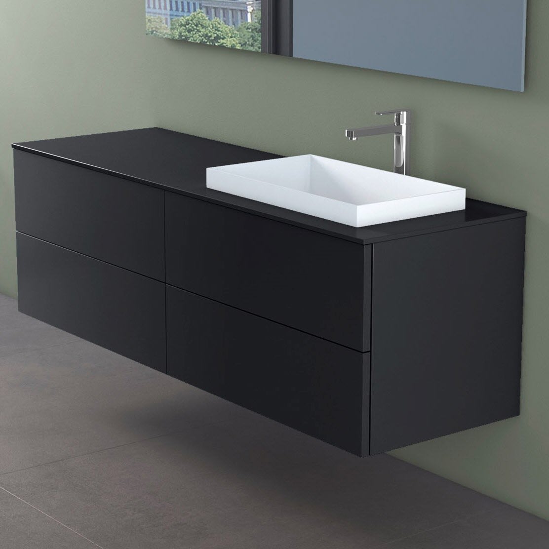 progettobagno Elba Unterschrank 160 cm, Ausführung rechts mit Glasplatte , Hahnlochbohrung und ELY 60 Einbauwaschtisch