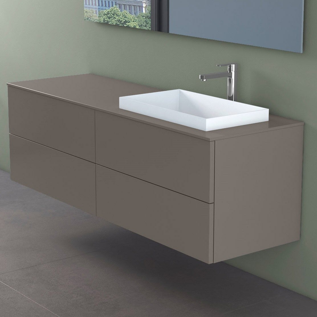 progettobagno Elba Unterschrank 160 cm, Ausführung rechts mit Glasplatte, Hahnlochbohrung und ELY 60 Einbauwaschtisch