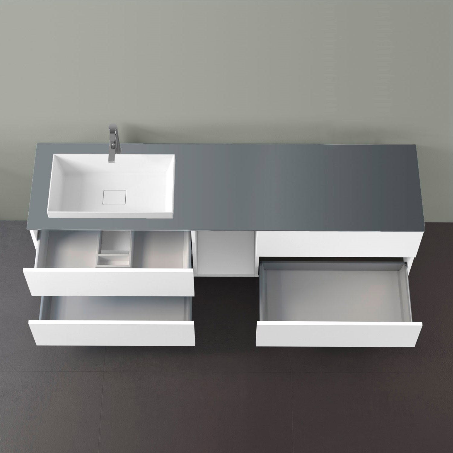 progettobagno Elba Unterschrank 190 cm, Ausführung links mit Glasplatte ohne Hahnlochbohrung und ELY 60 Einbauwaschtisch