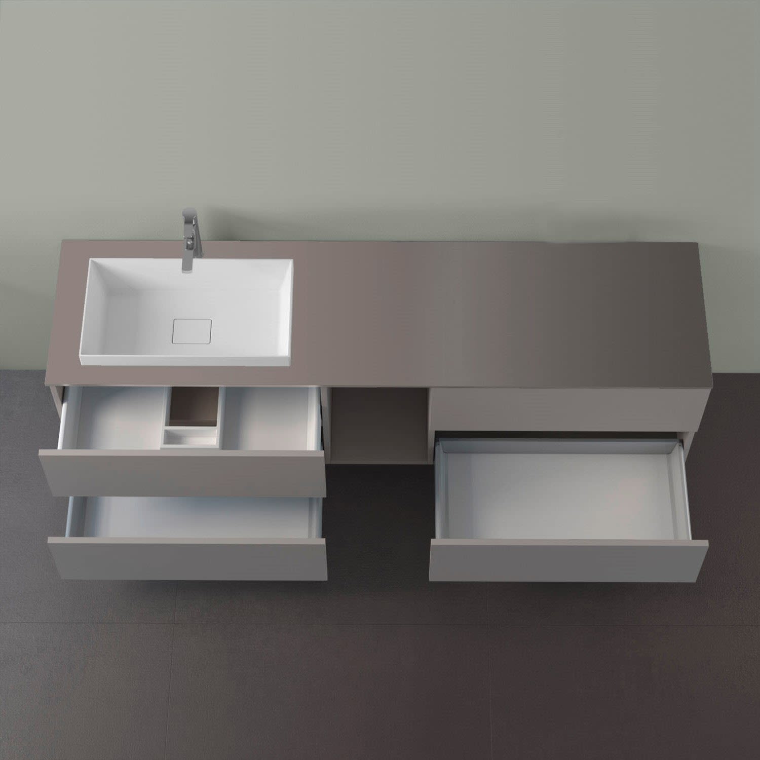 progettobagno Elba Unterschrank 190 cm, Ausführung links mit Glasplatte ohne Hahnlochbohrung und ELY 60 Einbauwaschtisch