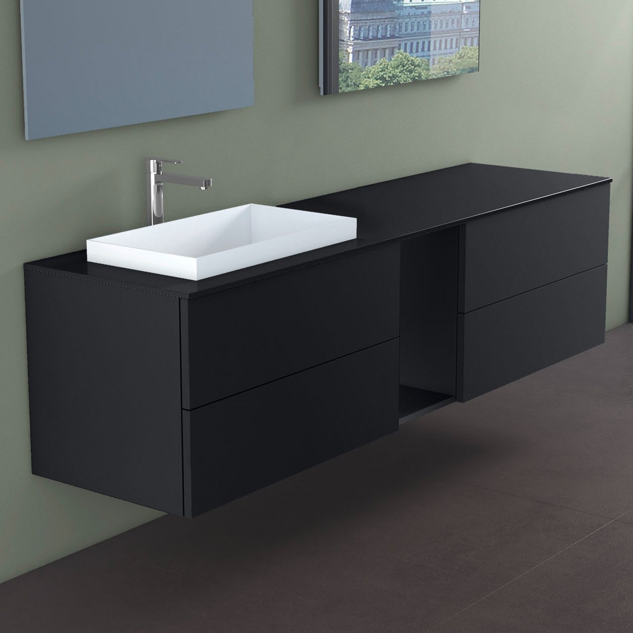 progettobagno Elba Unterschrank 190 cm, Ausführung links mit Glasplatte , Hahnlochbohrung und ELY 60 Einbauwaschtisch