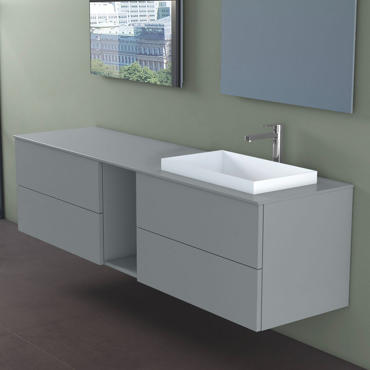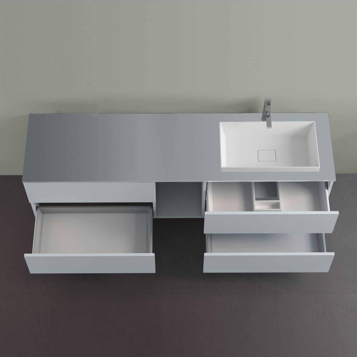 progettobagno Elba Unterschrank 190 cm, Ausführung rechts mit Glasplatte ohne Hahnlochbohrung und ELY 60 Einbauwaschtisch