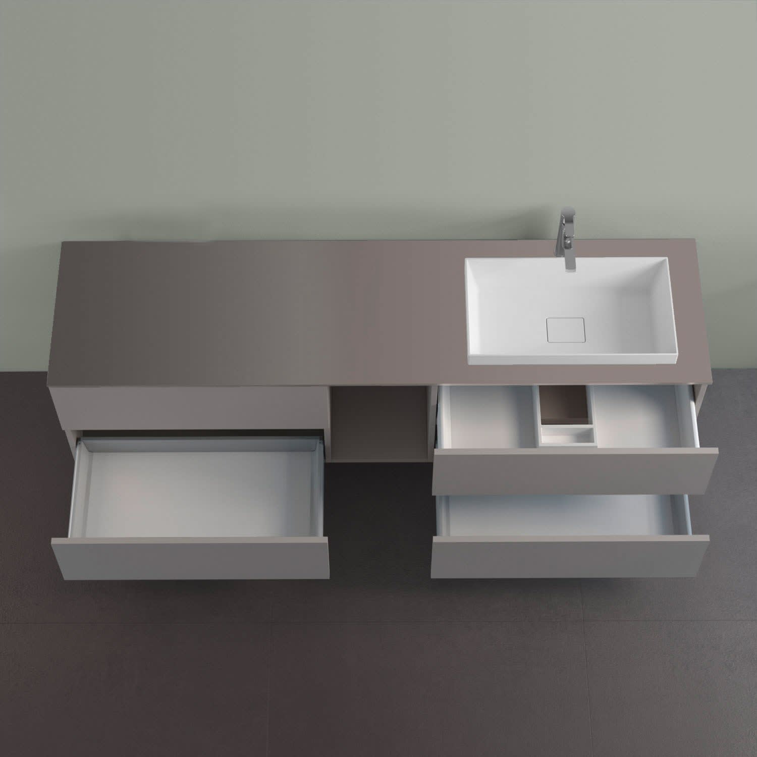 progettobagno Elba Unterschrank 190 cm, Ausführung rechts mit Glasplatte ohne Hahnlochbohrung und ELY 60 Einbauwaschtisch