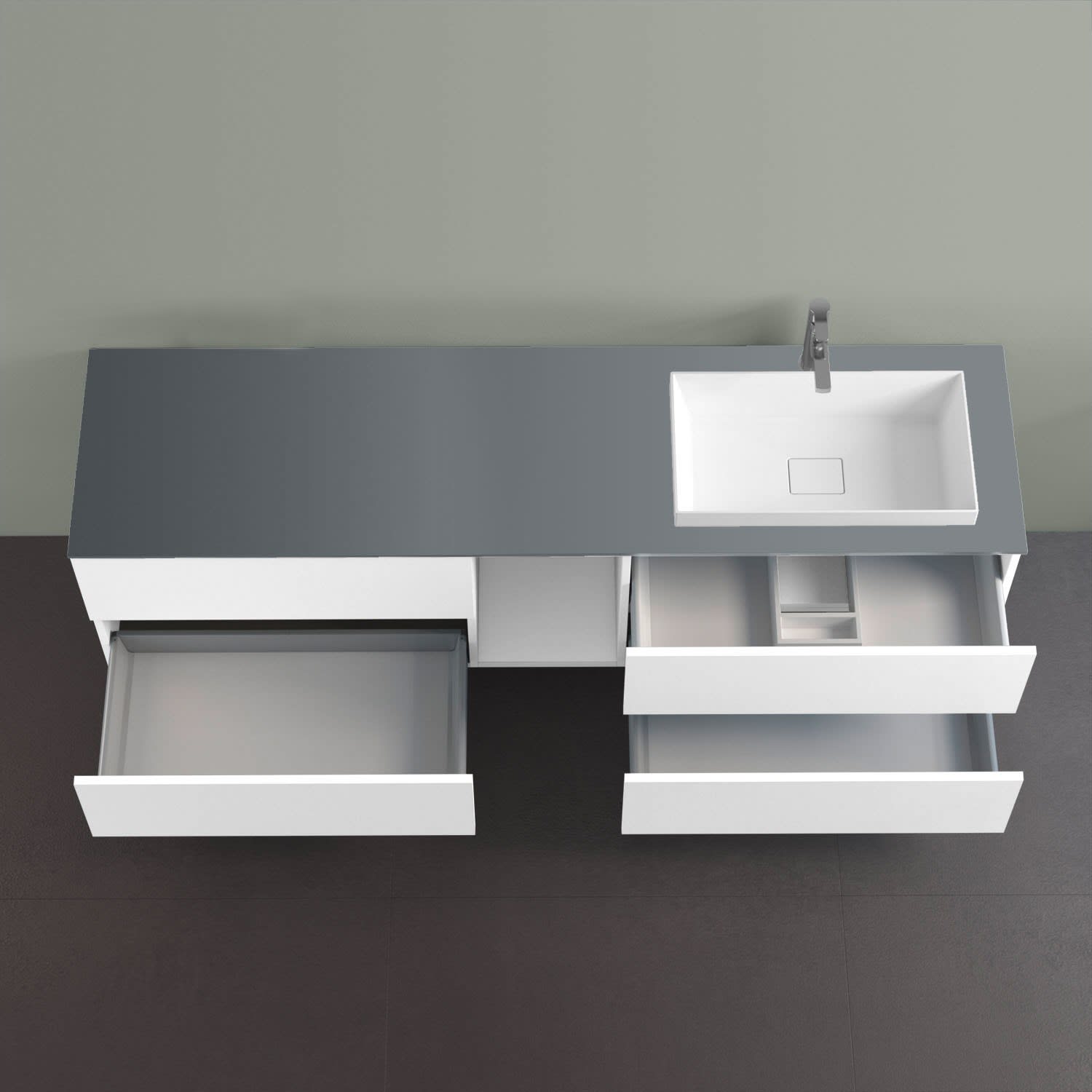 progettobagno Elba Unterschrank 190 cm, Ausführung rechts mit Glasplatte , Hahnlochbohrung und ELY 60 Einbauwaschtisch