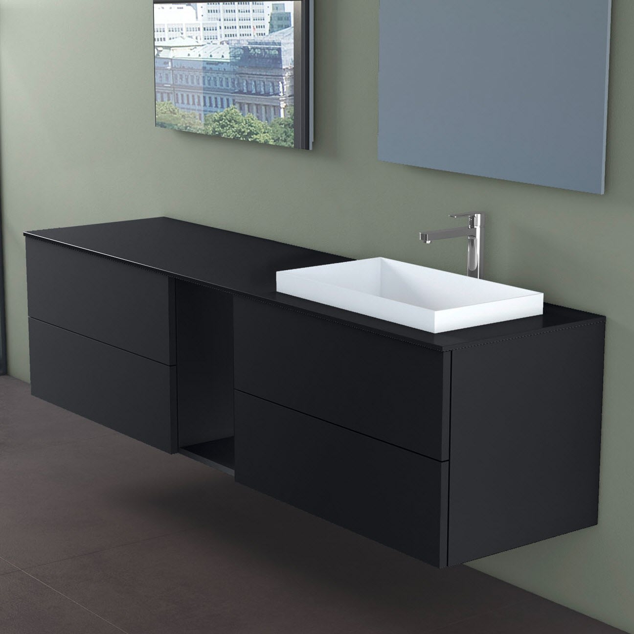 progettobagno Elba Unterschrank 190 cm, Ausführung rechts mit Glasplatte , Hahnlochbohrung und ELY 60 Einbauwaschtisch