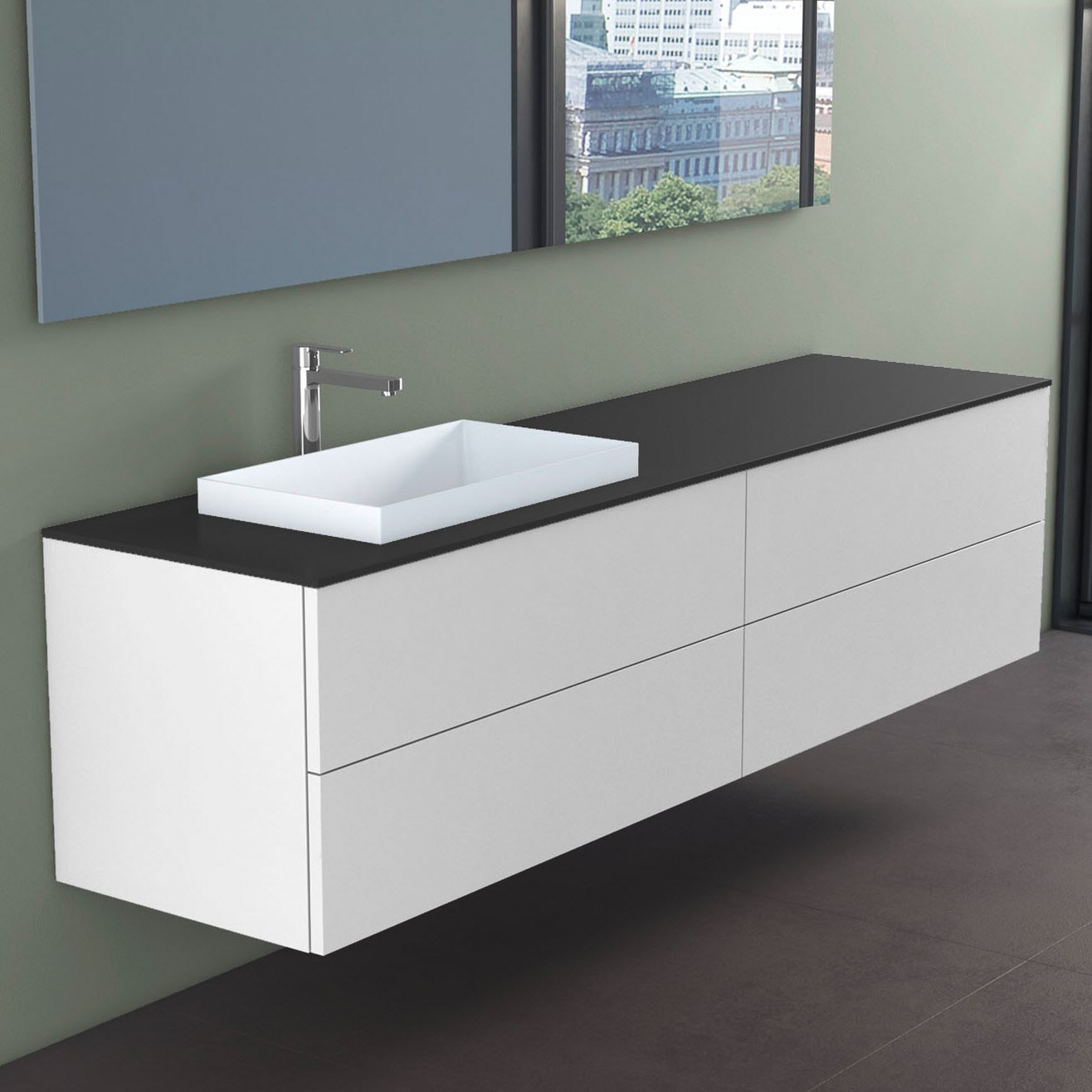 progettobagno Elba Unterschrank 200 cm, Ausführung links mit Glasplatte ohne Hahnlochbohrung und ELY 60 Einbauwaschtisch