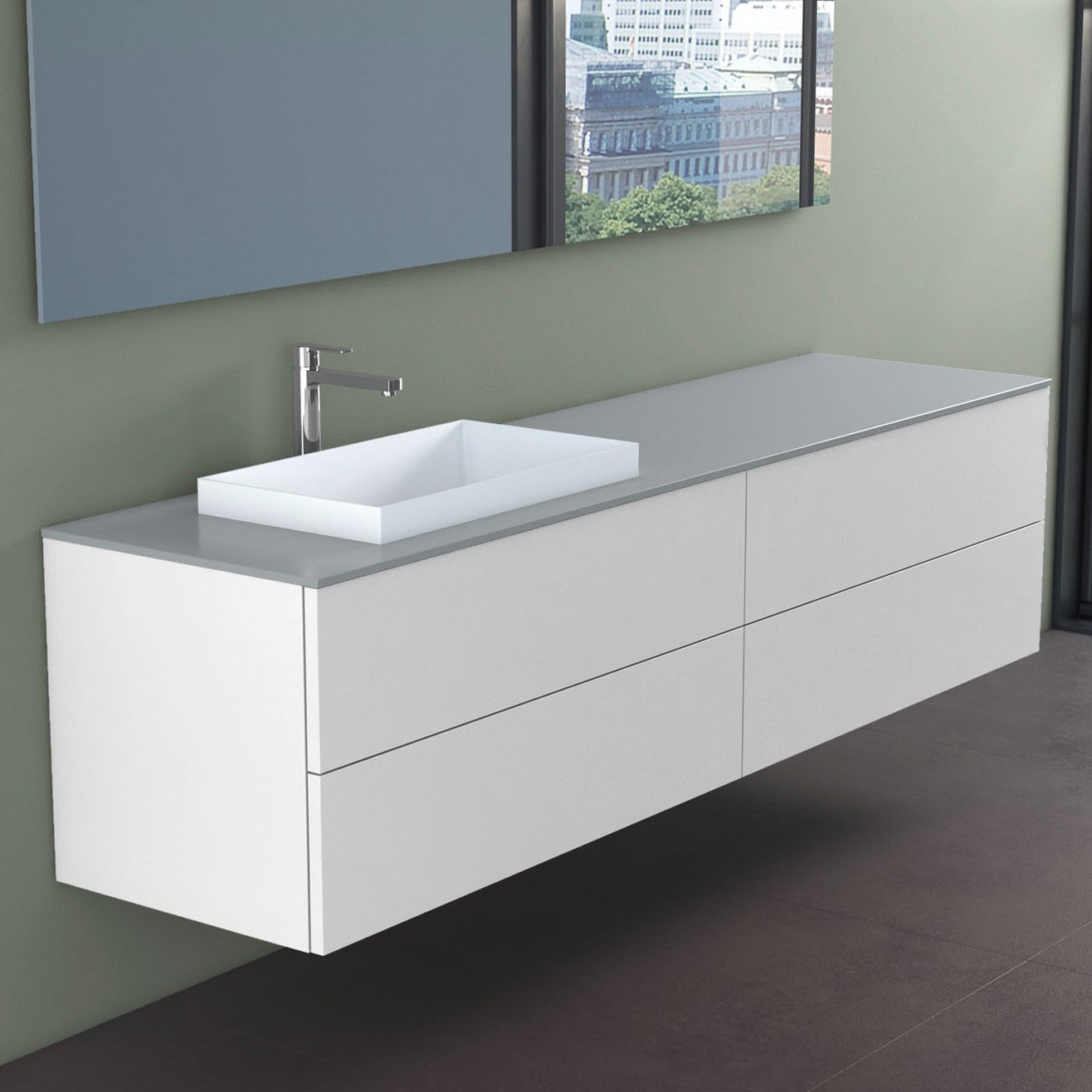 progettobagno Elba Unterschrank 200 cm, Ausführung links mit Glasplatte , Hahnlochbohrung und ELY 60 Einbauwaschtisch