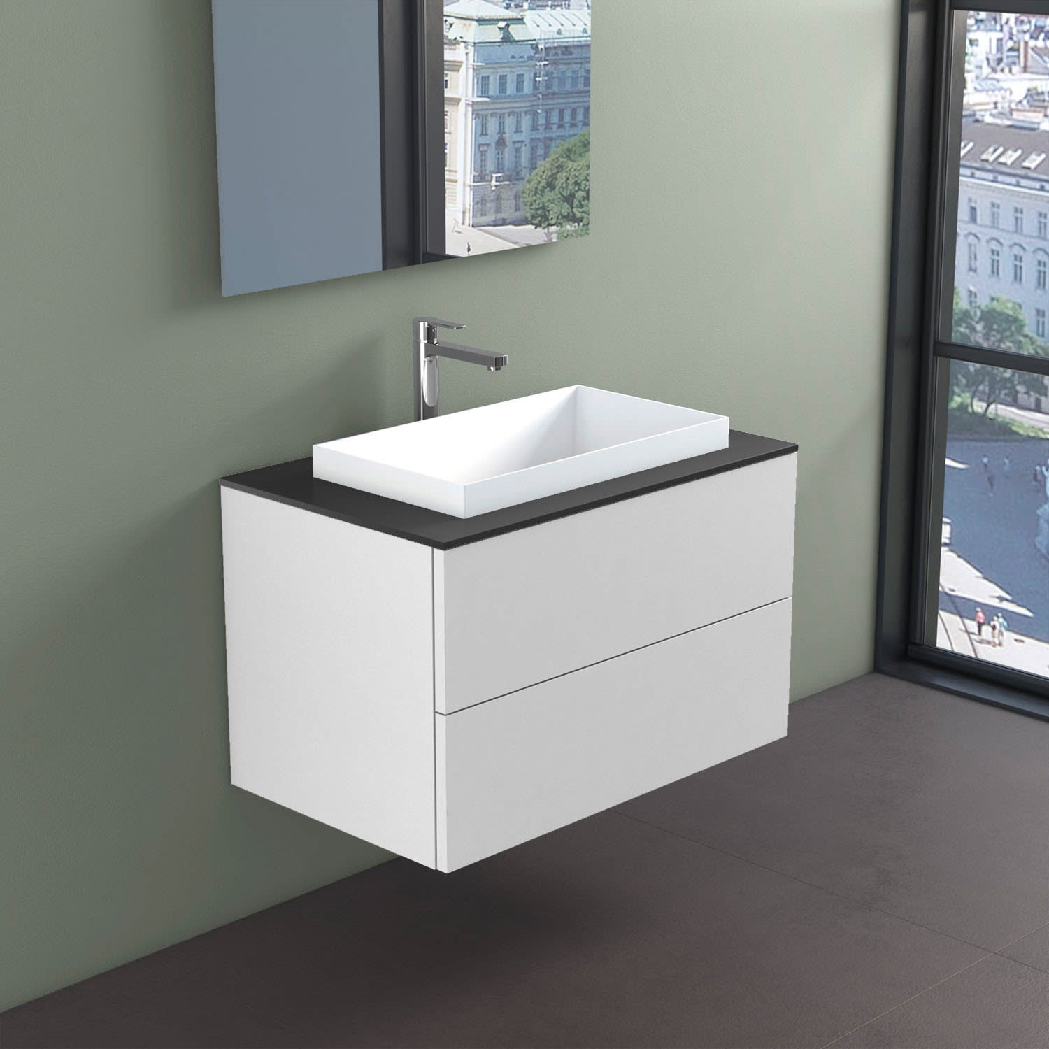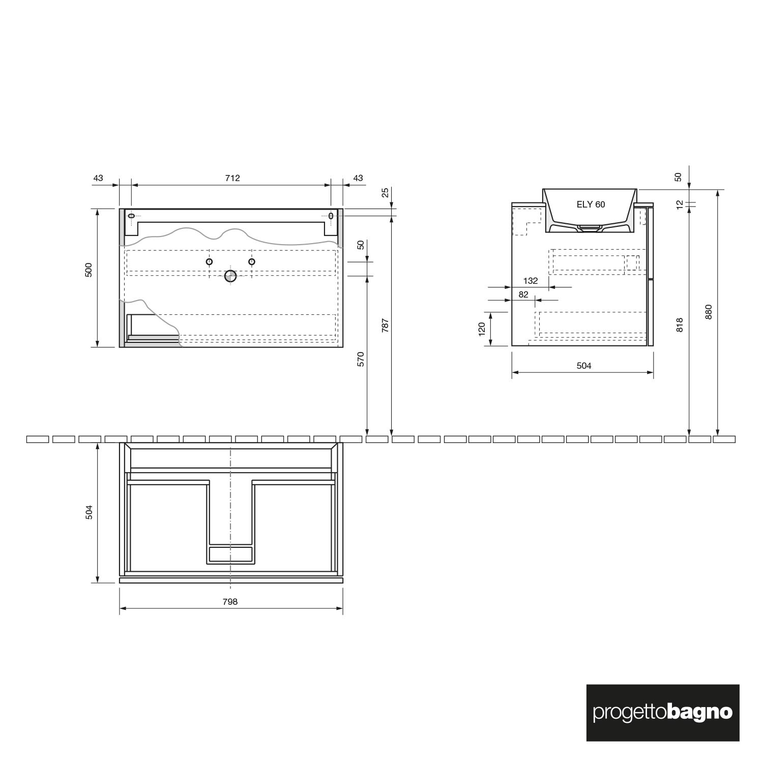 progettobagno Elba Unterschrank 80 cm mit Glasplatte, Hahnlochbohrung und ELY 60 Einbauwaschtisch