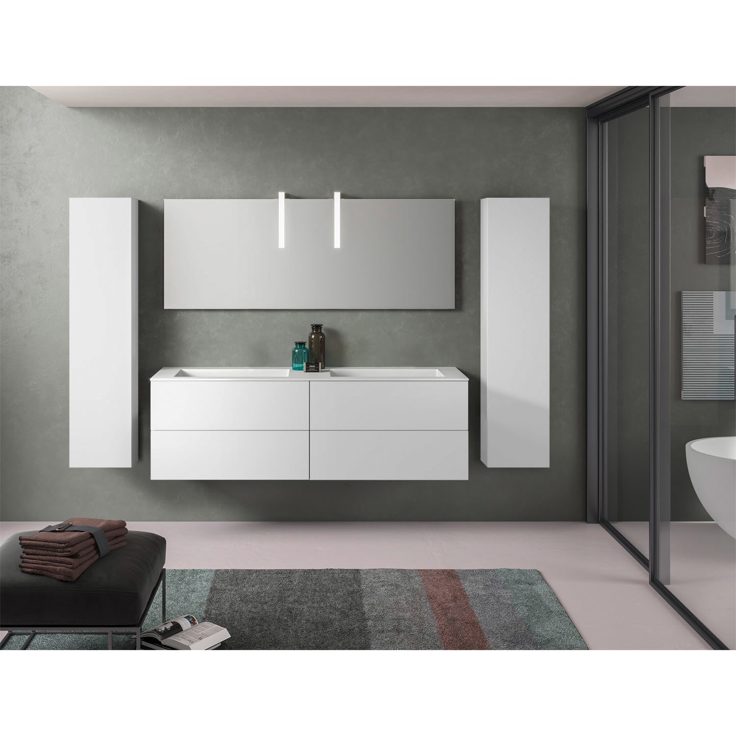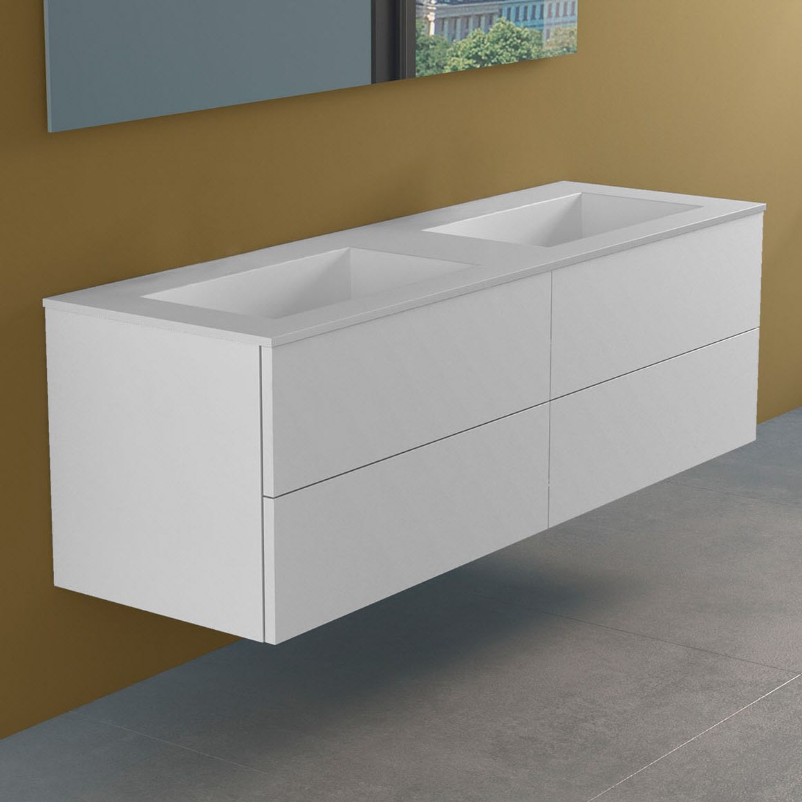 progettobagno Elba Lago Doppel-Waschtisch mit Unterschrank 160 cm ohne Hahnloch