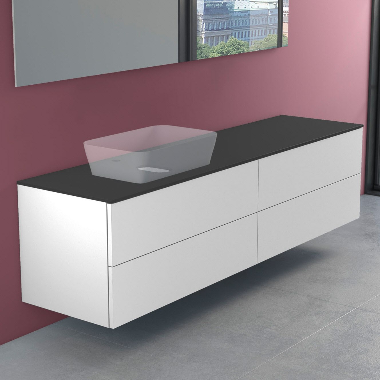 progettobagno Elba Modular Glass, Ausführung links Waschtischkonsole 200 cm mit Hahnlochbohrung