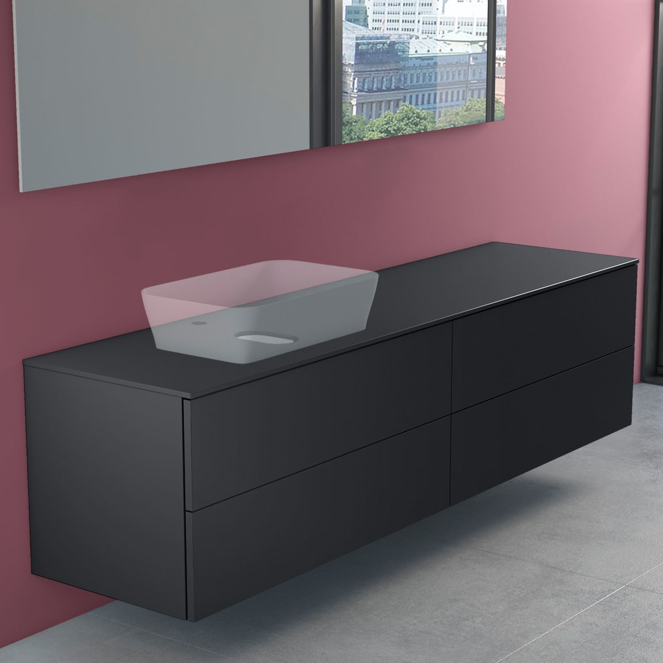 progettobagno Elba Modular Glass, Ausführung links Waschtischkonsole 200 cm mit Hahnlochbohrung