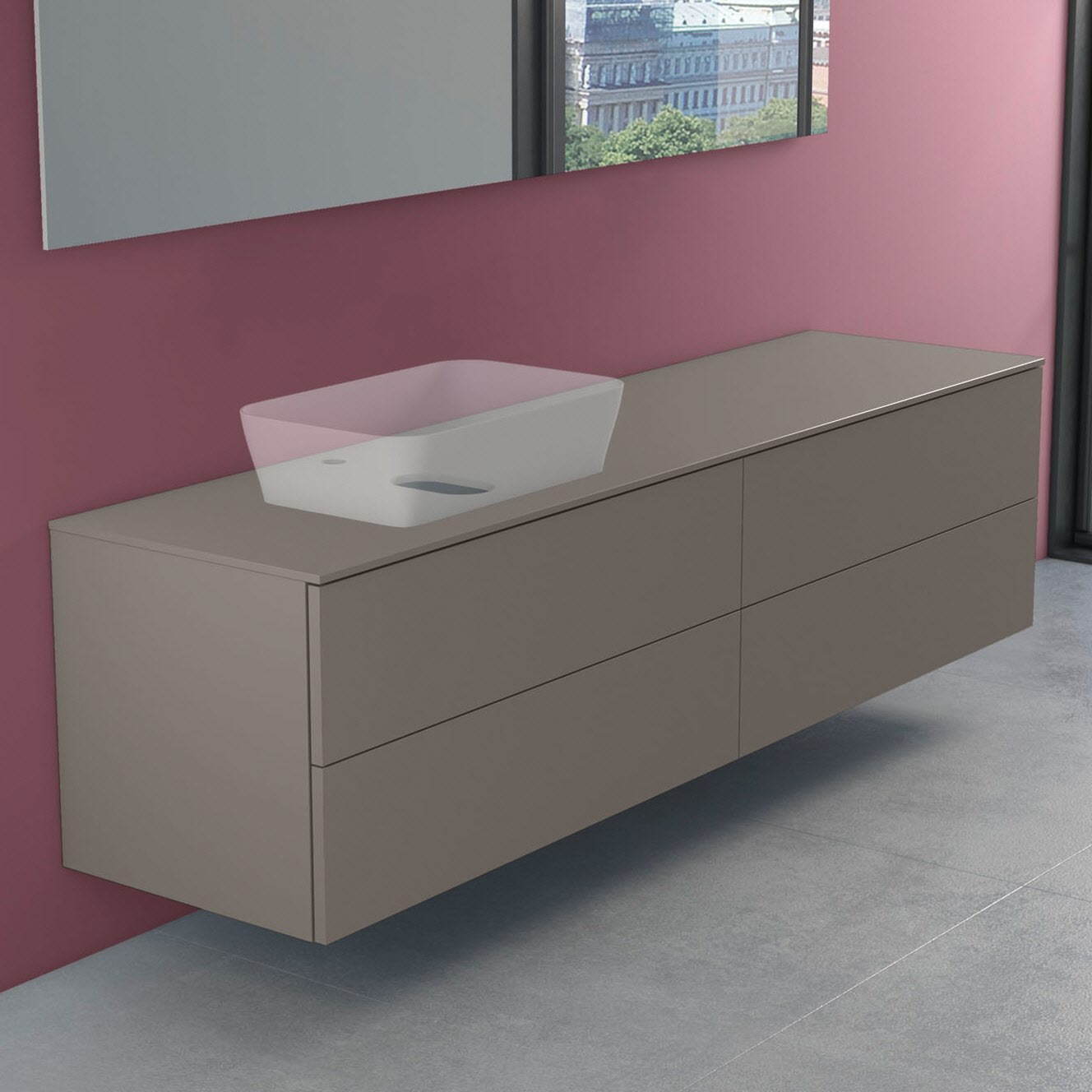 progettobagno Elba Modular Glass, Ausführung links Waschtischkonsole 200 cm mit Hahnlochbohrung