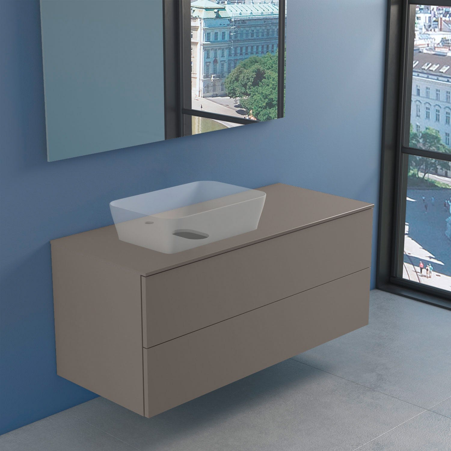 progettobagno Elba Modular Glass, Ausführung links Waschtischkonsole 120 cm mit Hahnlochbohrung