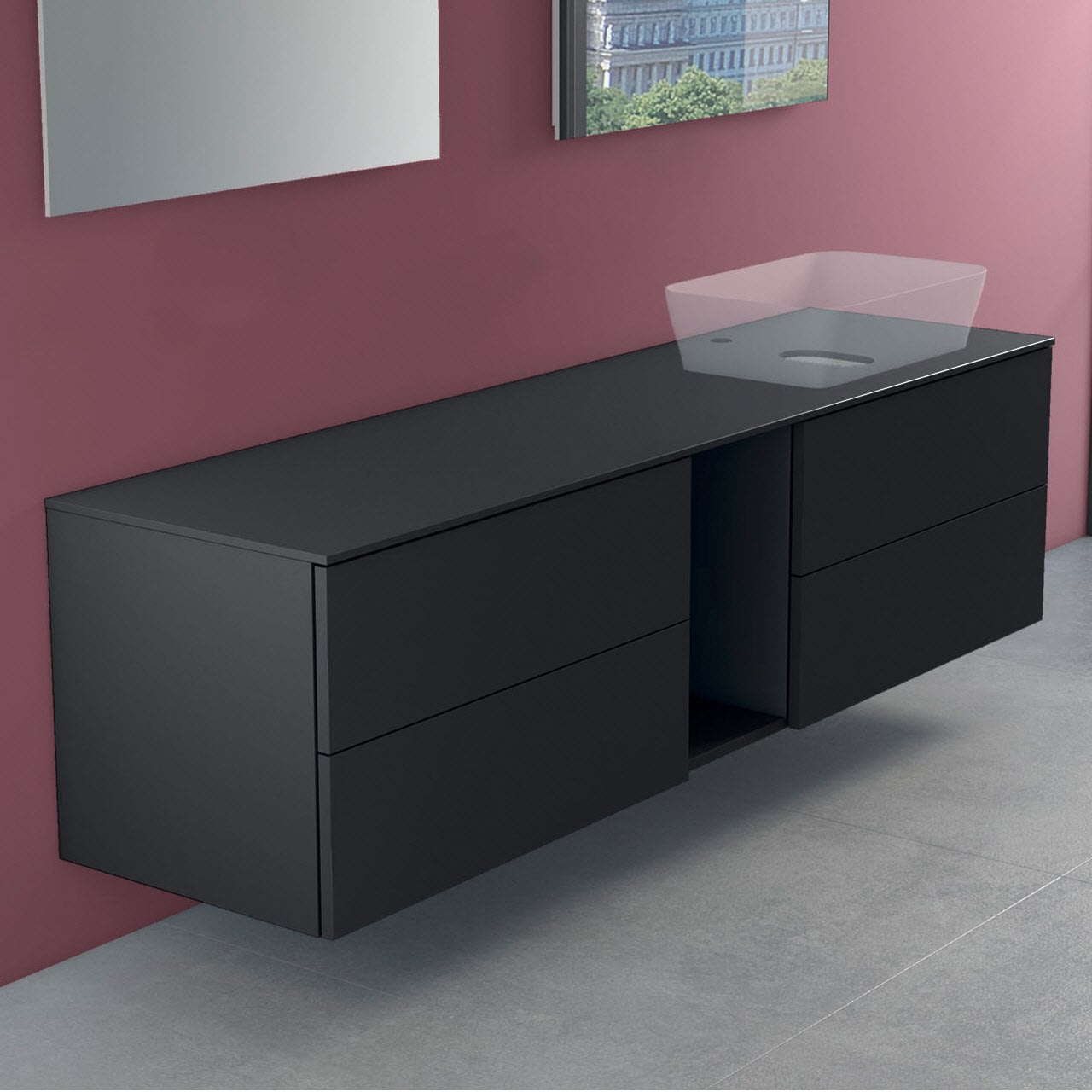 progettobagno Elba Modular Glass, Ausführung rechts Waschtischkonsole 190 cm mit Hahnlochbohrung