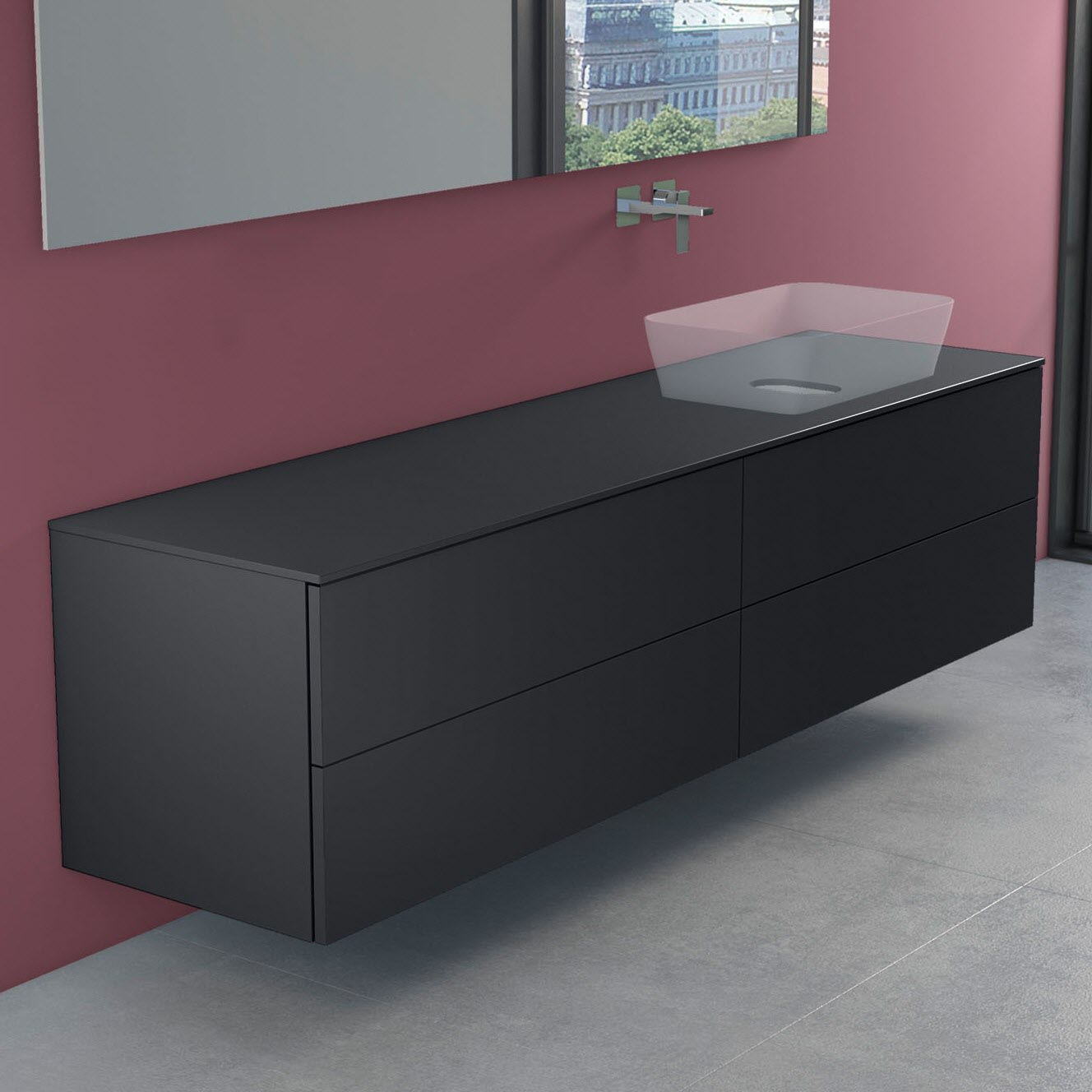 progettobagno Elba Modular Glass, Ausführung rechts Waschtischkonsole 200 cm ohne Hahnlochbohrung