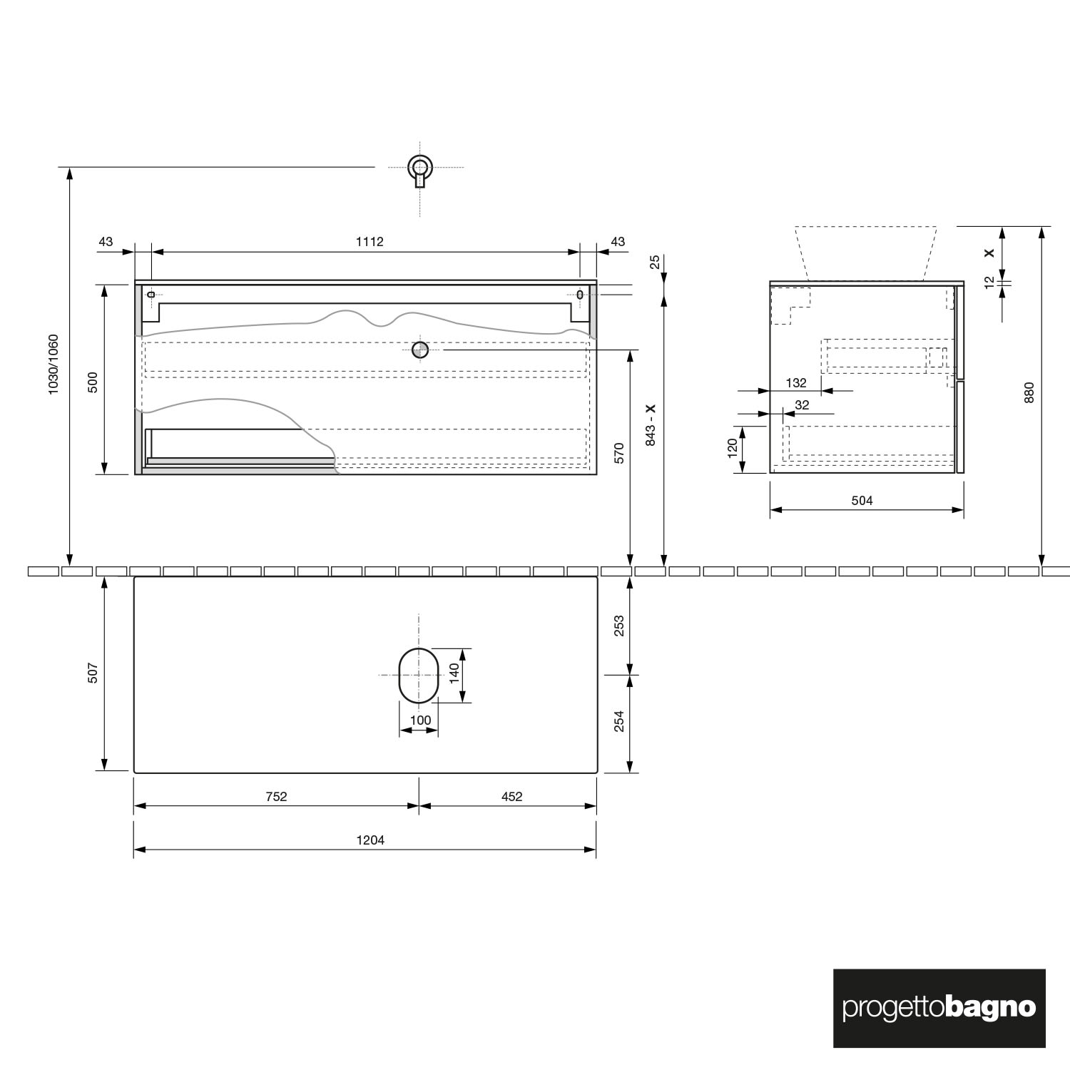 progettobagno Elba Modular Glass, Ausführung rechts Waschtischkonsole 120 cm ohne Hahnlochbohrung