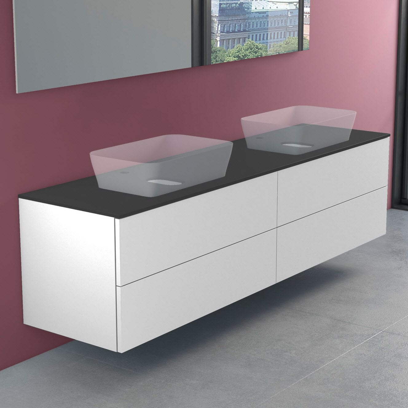 progettobagno Elba Modular Glass Doppel-Waschtischkonsole 200 cm mit Hahnlochbohrung