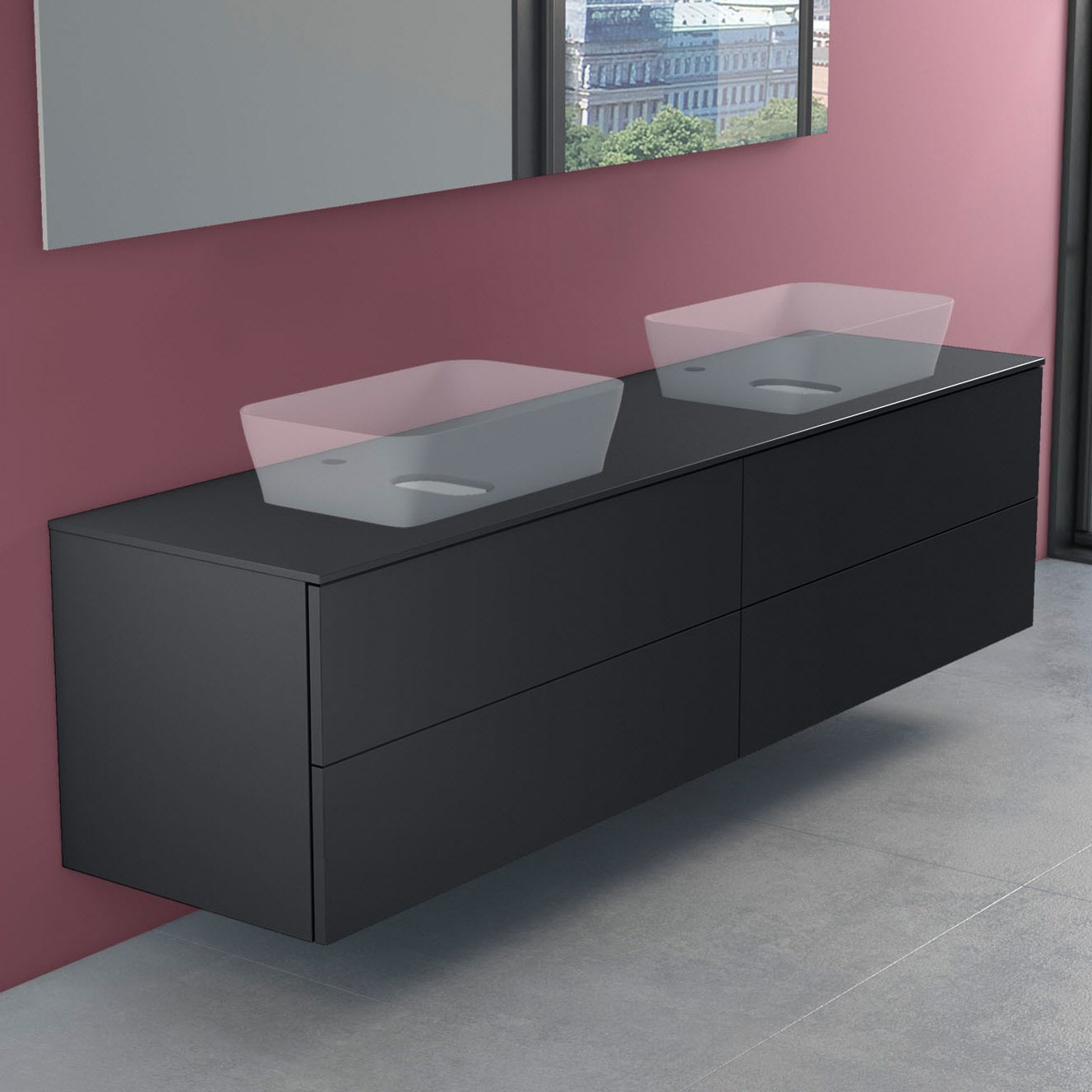 progettobagno Elba Modular Glass Doppel- Waschtischkonsole 200 cm mit Hahnlochbohrung