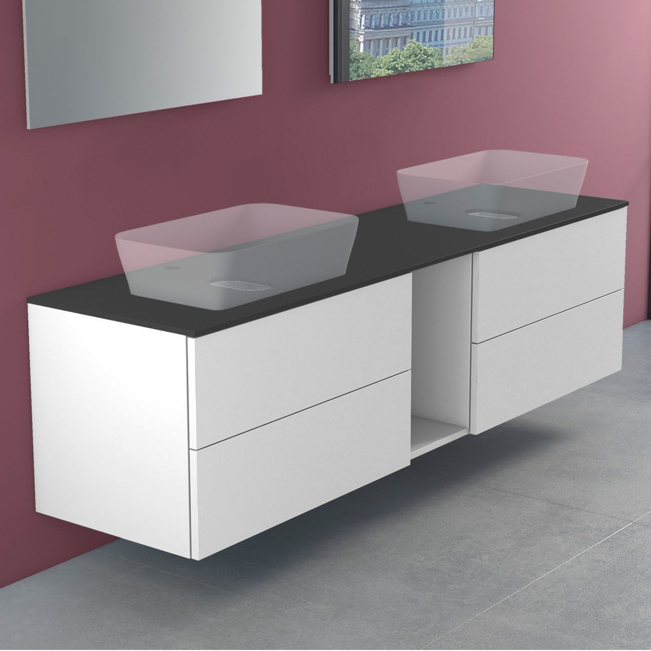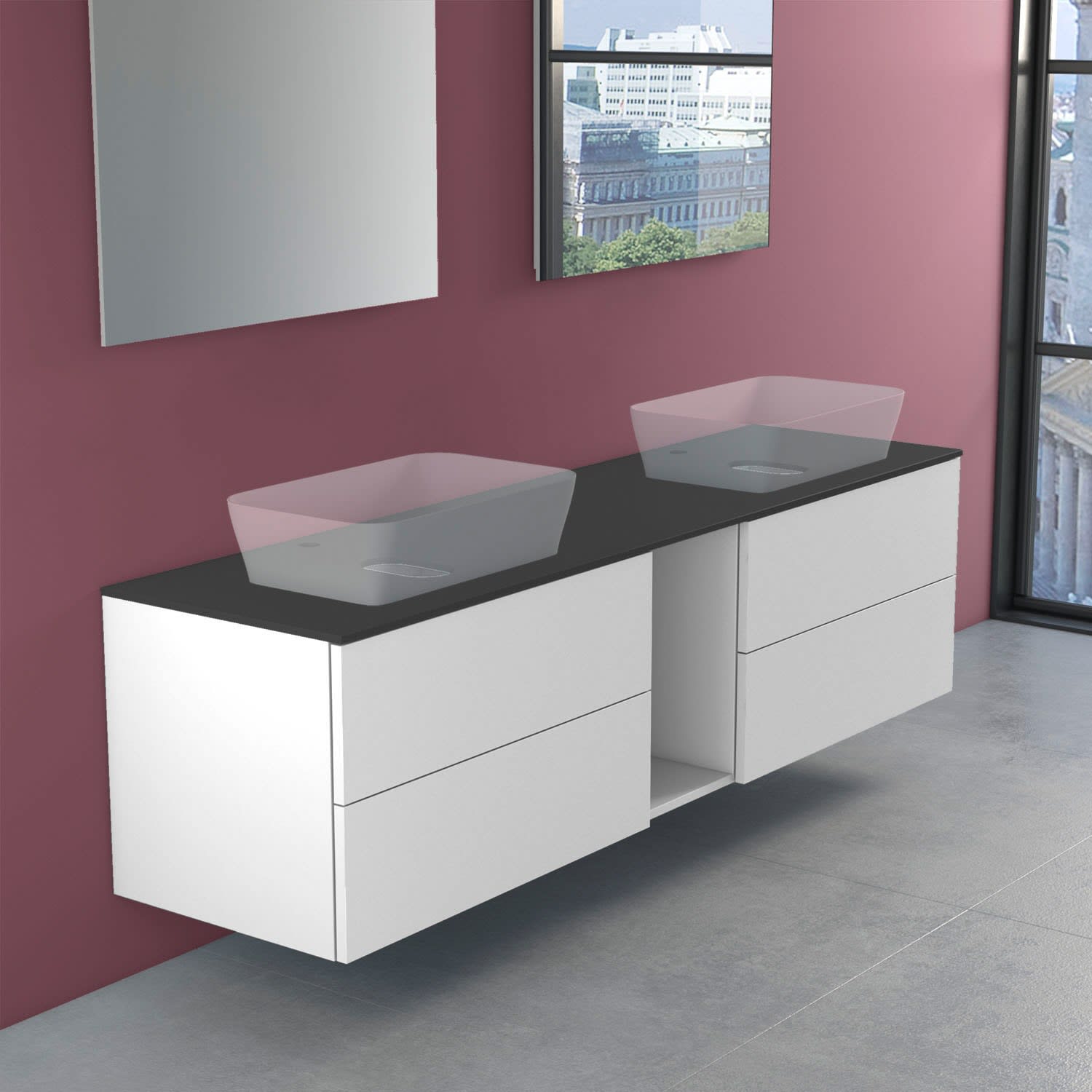 progettobagno Elba Modular Glass Doppel-Waschtischkonsole 190 cm mit Hahnlochbohrung