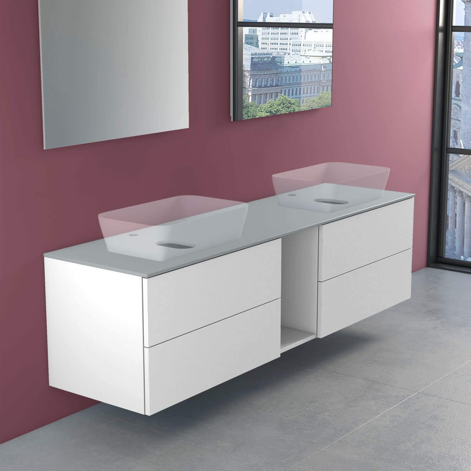 progettobagno Elba Modular Glass Doppel-Waschtischkonsole 190 cm mit Hahnlochbohrung