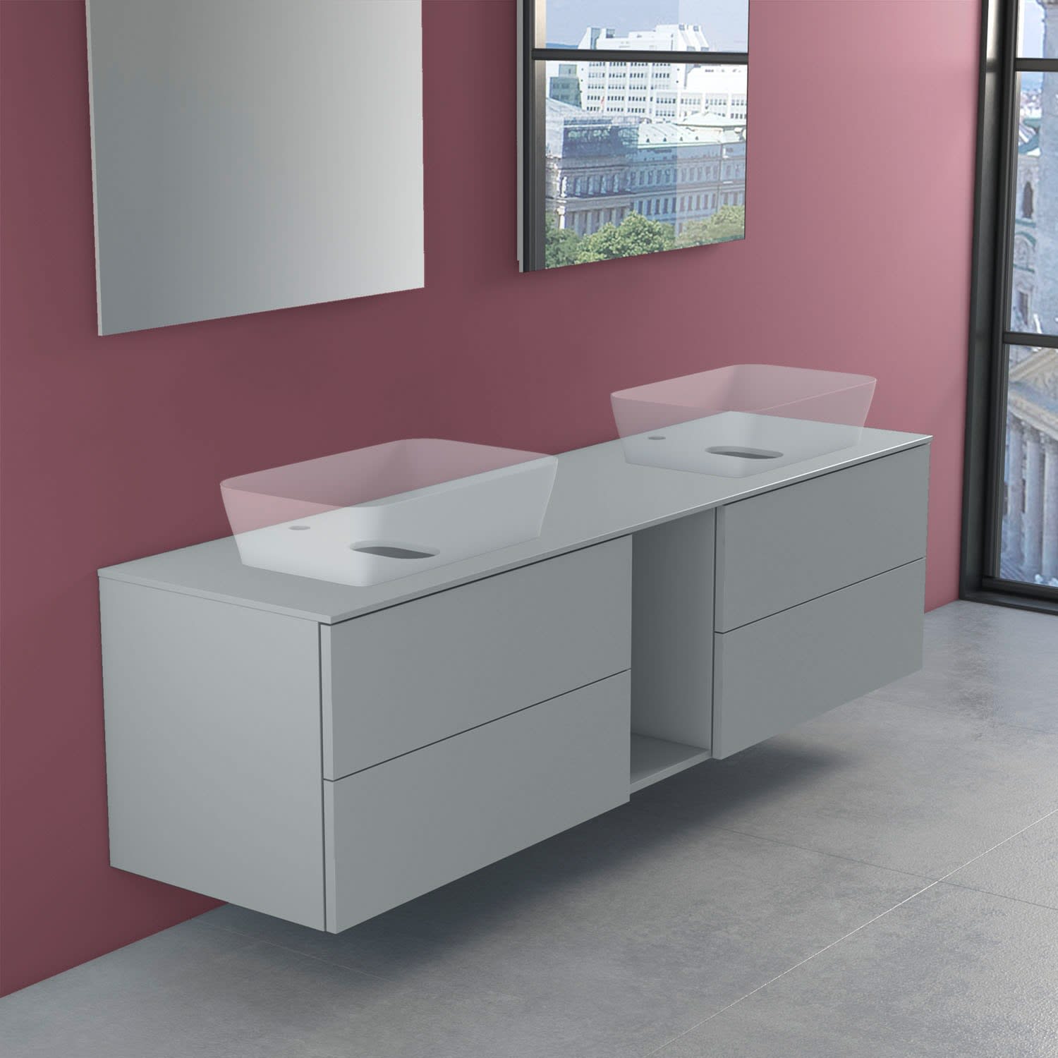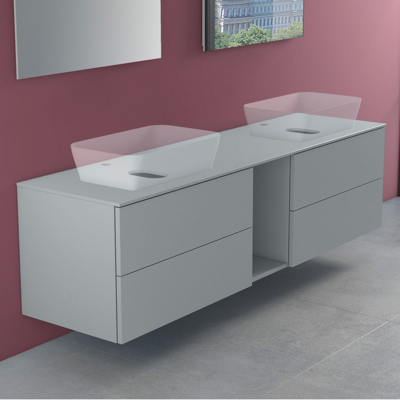 progettobagno Elba Modular Glass Doppel-Waschtischkonsole 190 cm mit Hahnlochbohrung