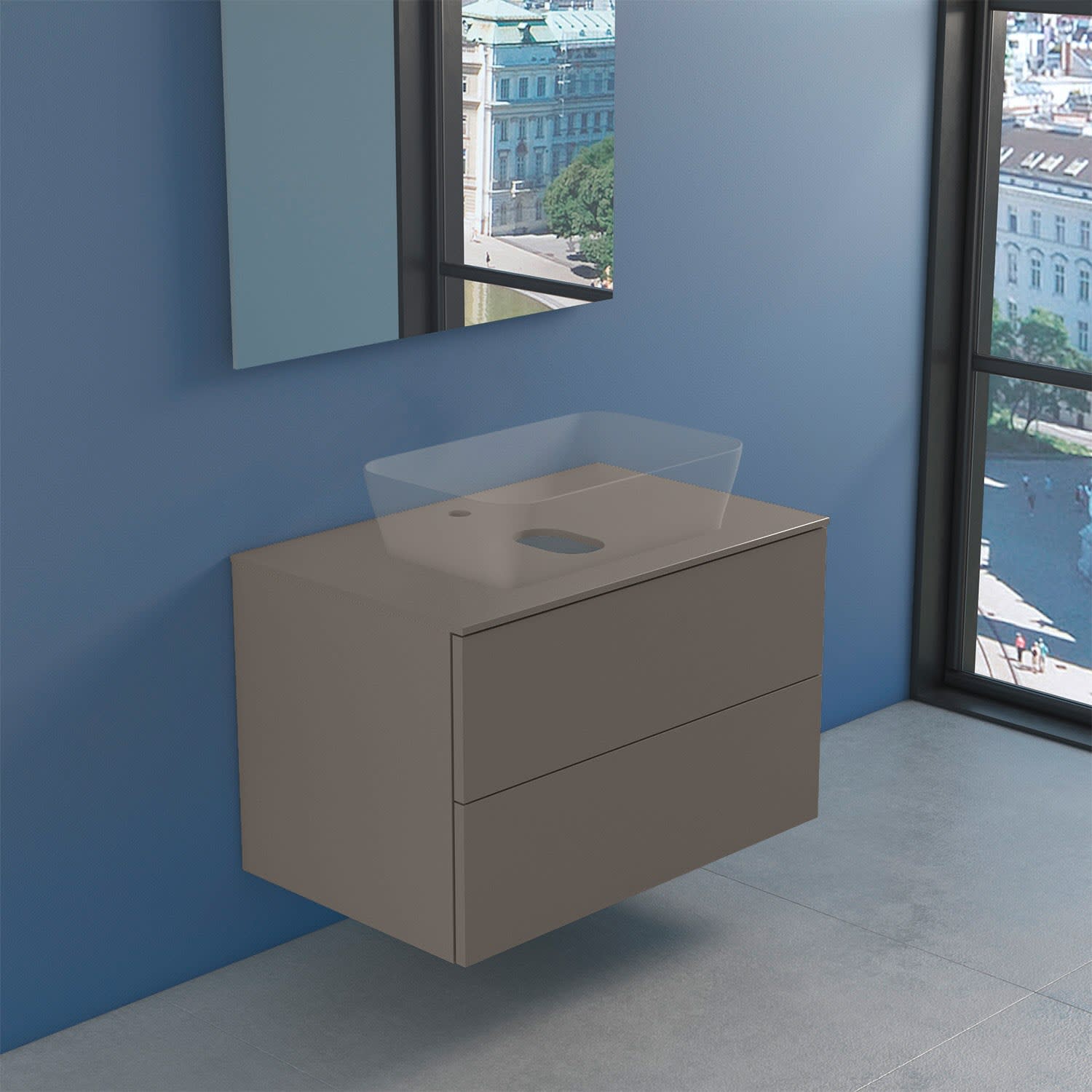 progettobagno Elba Modular Glass Waschtischkonsole 80 cm mit Hahnlochbohrung