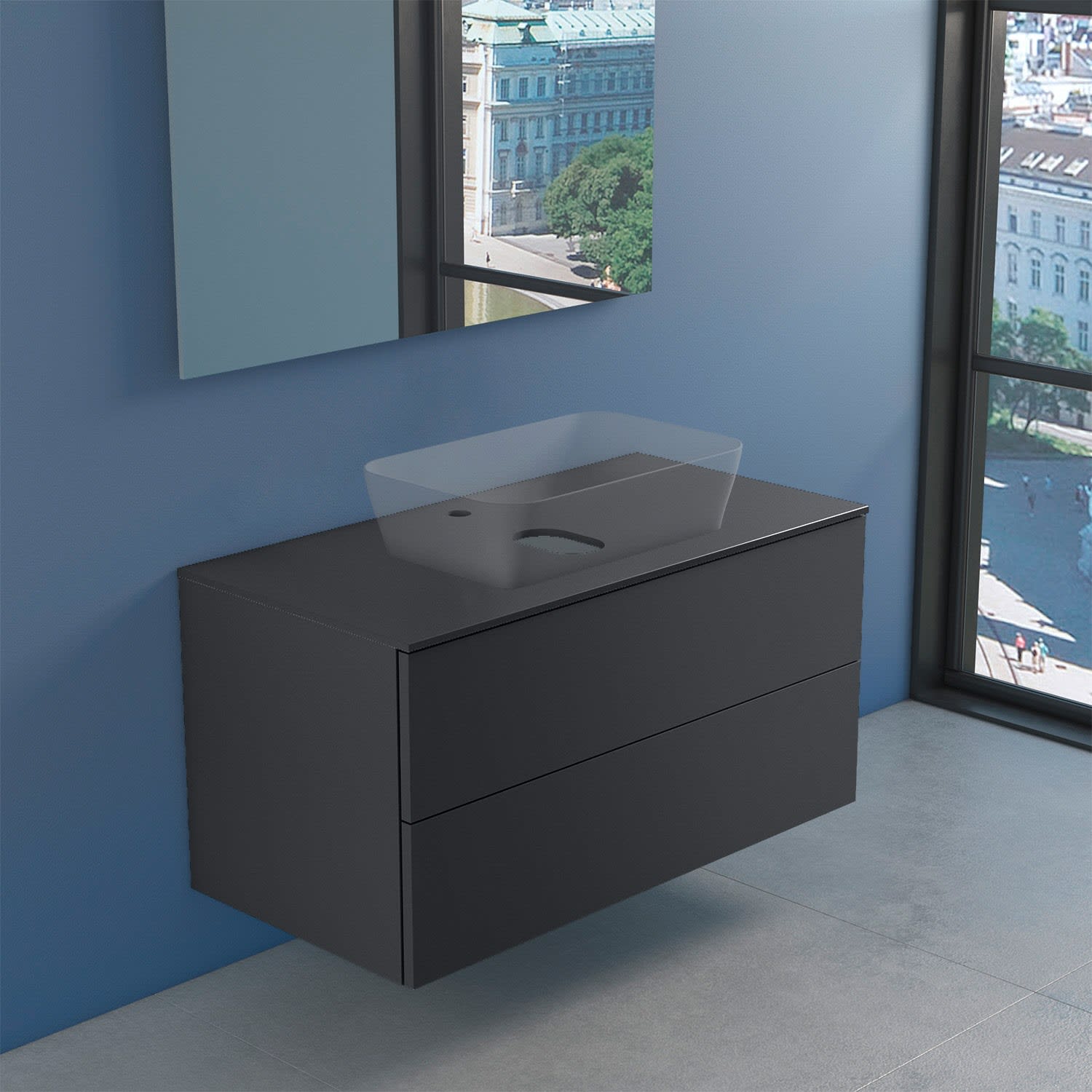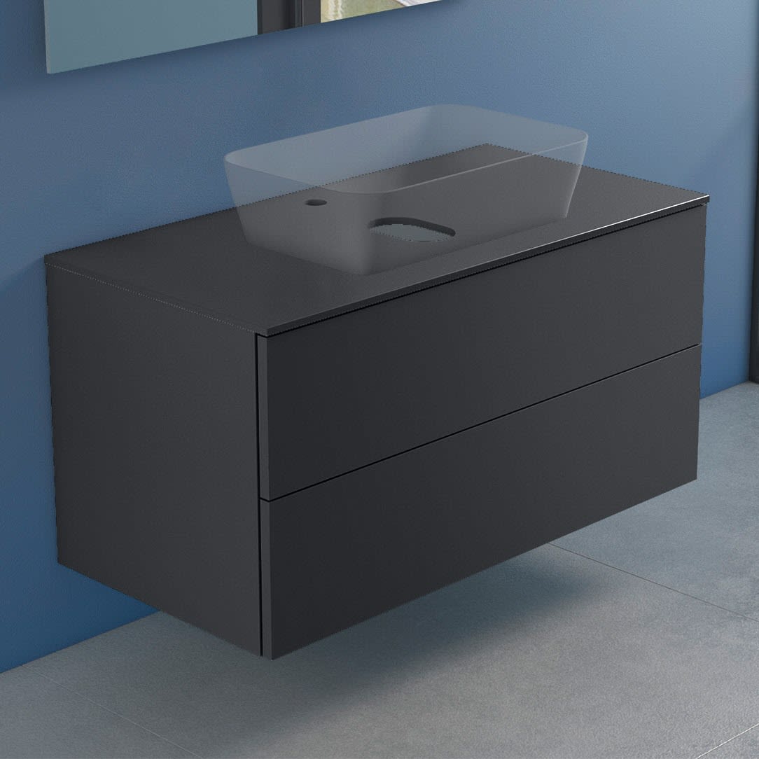 progettobagno Elba Modular Glass Waschtischkonsole 100 cm mit Hahnlochbohrung