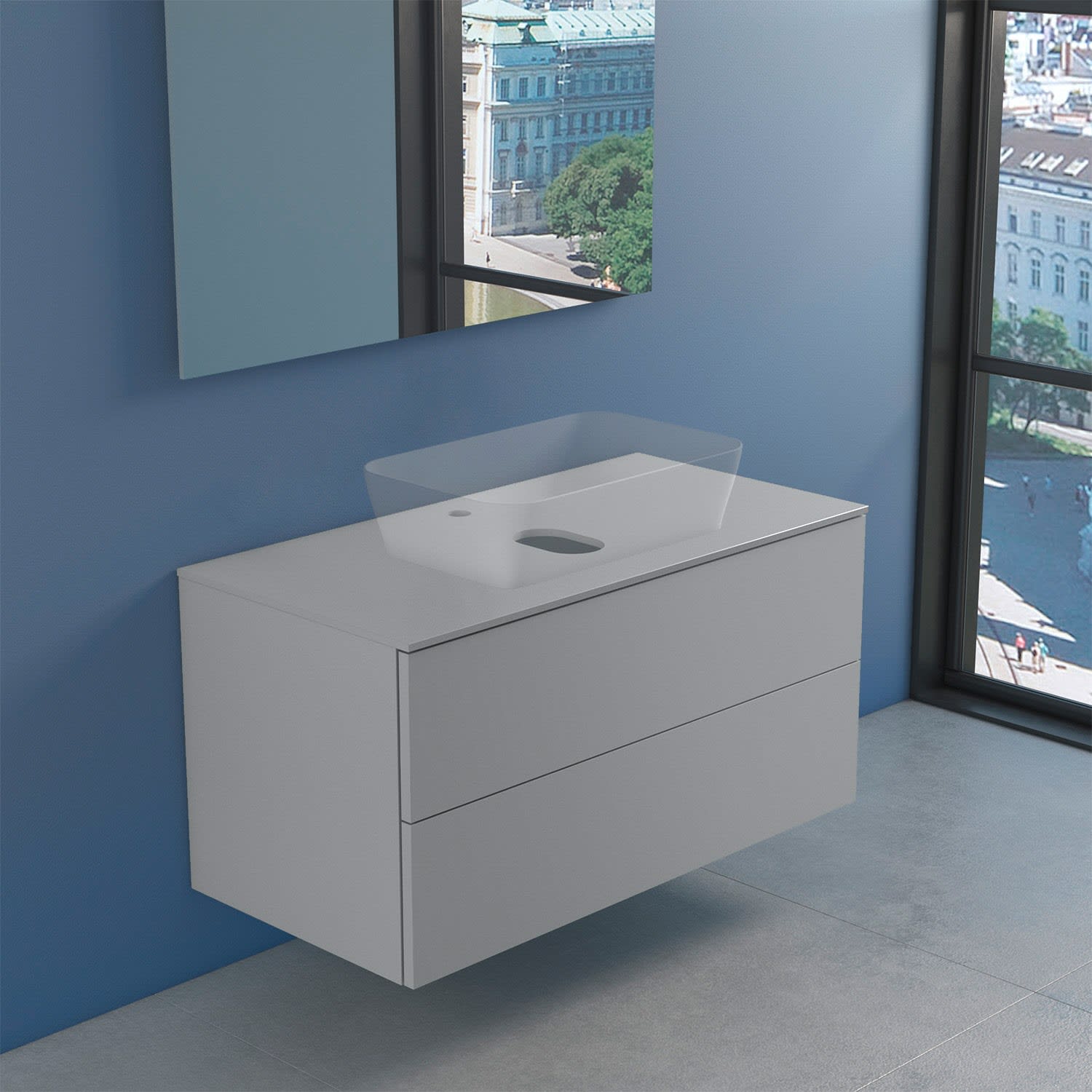 progettobagno Elba Modular Glass Waschtischkonsole 100 cm mit Hahnlochbohrung