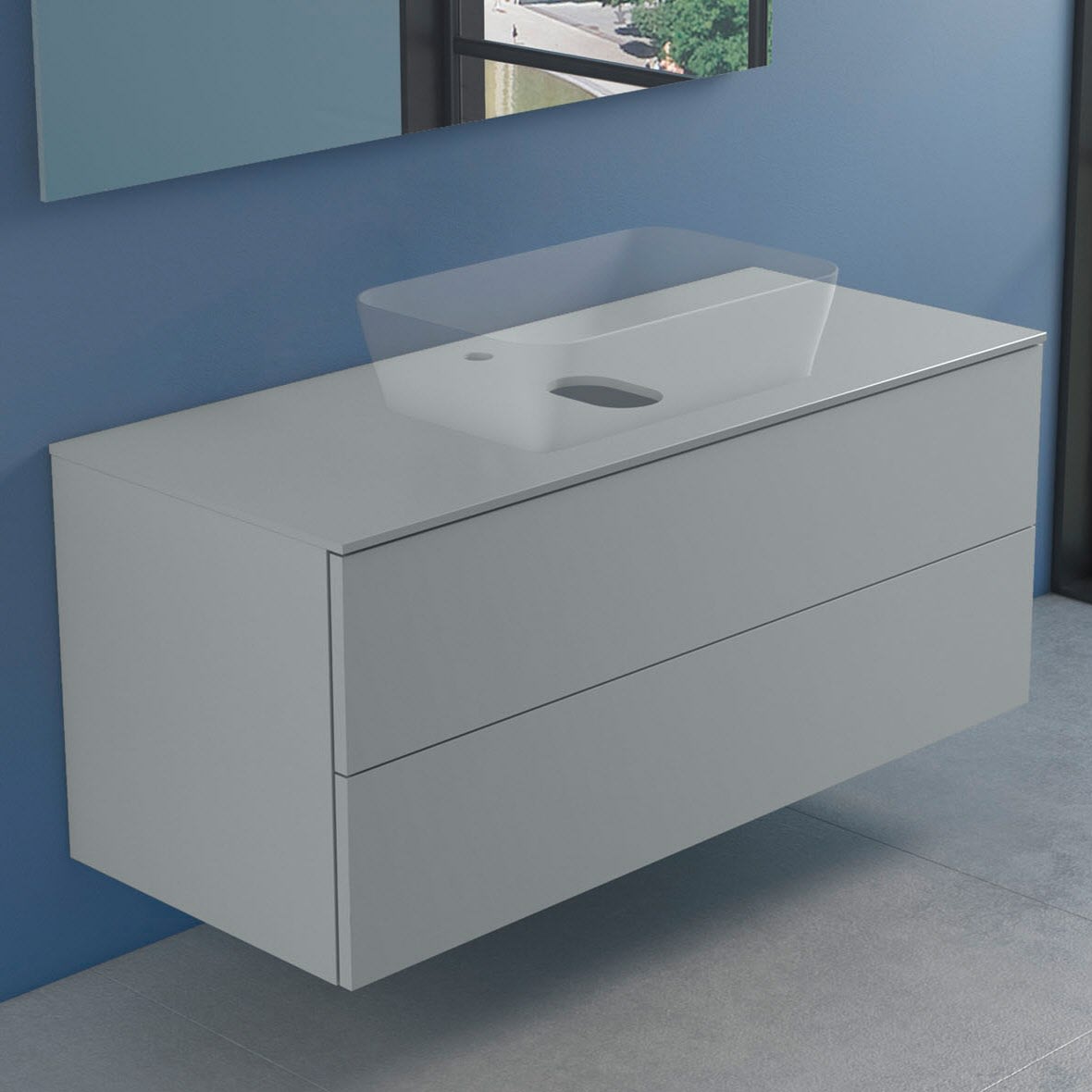 progettobagno Elba Modular Glass Waschtischkonsole 120 cm mit Hahnlochbohrung