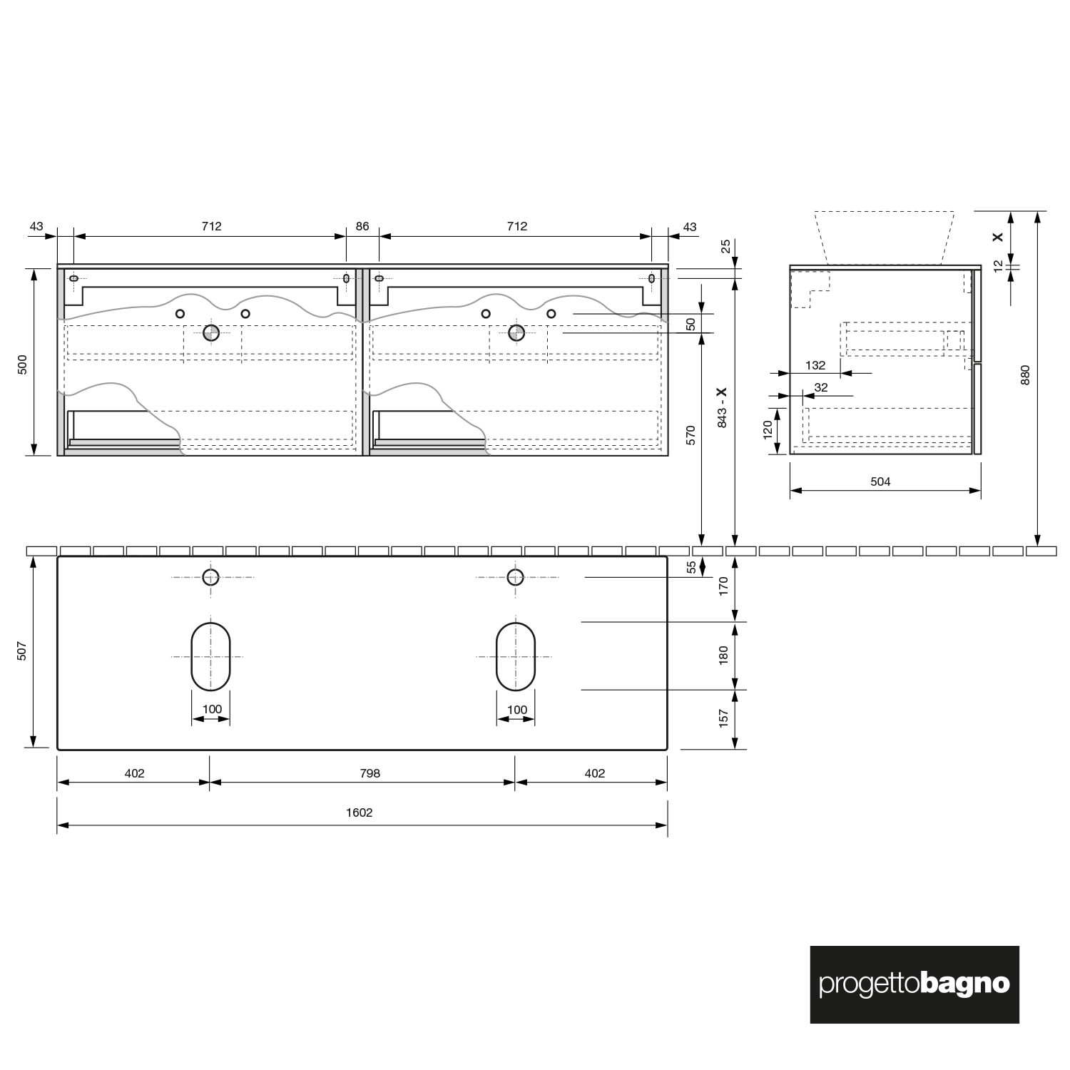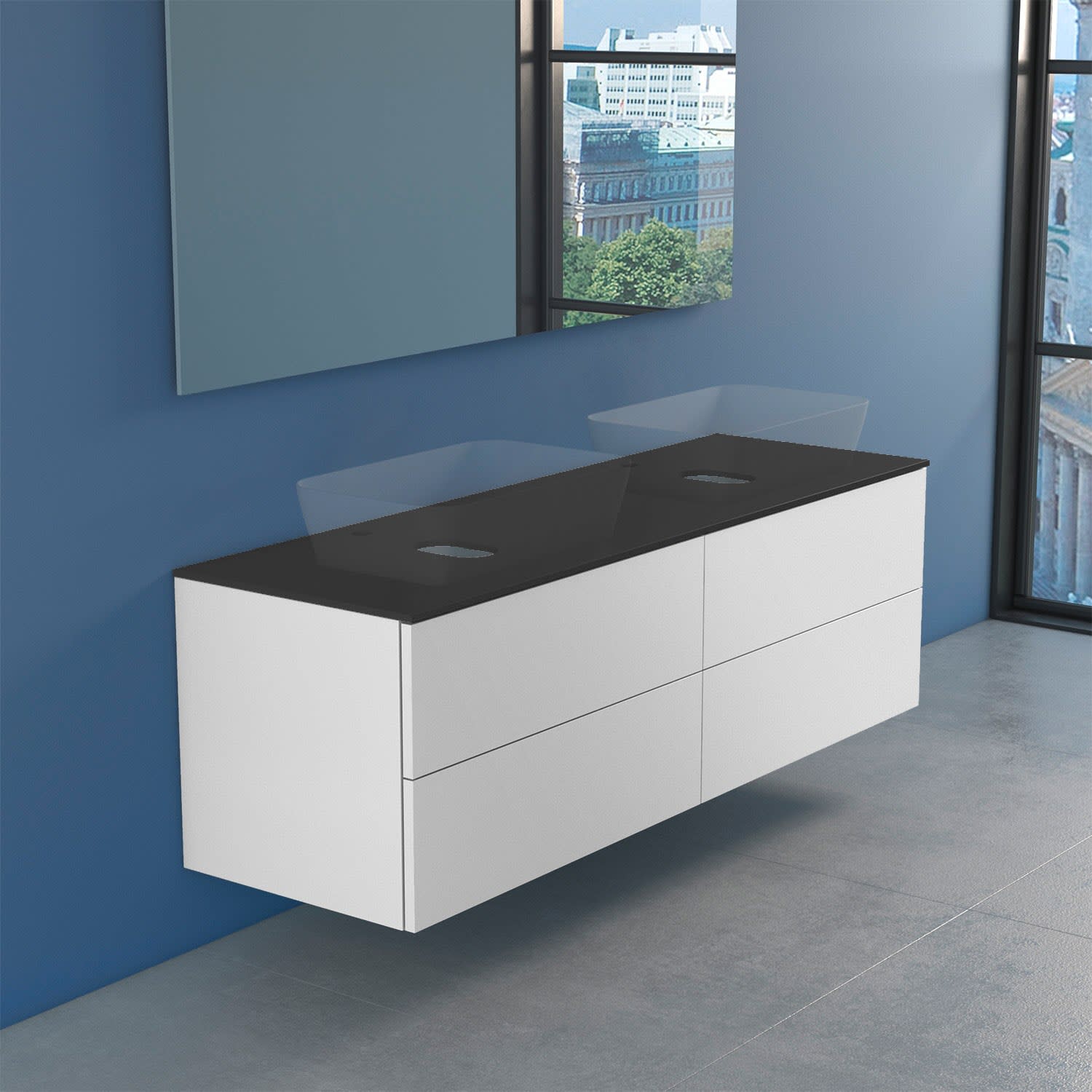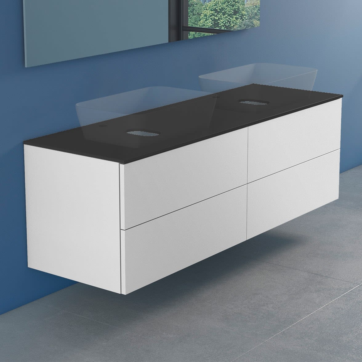 progettobagno Elba Modular Glass Doppel-Waschtischkonsole 160 cm mit Hahnlochbohrung
