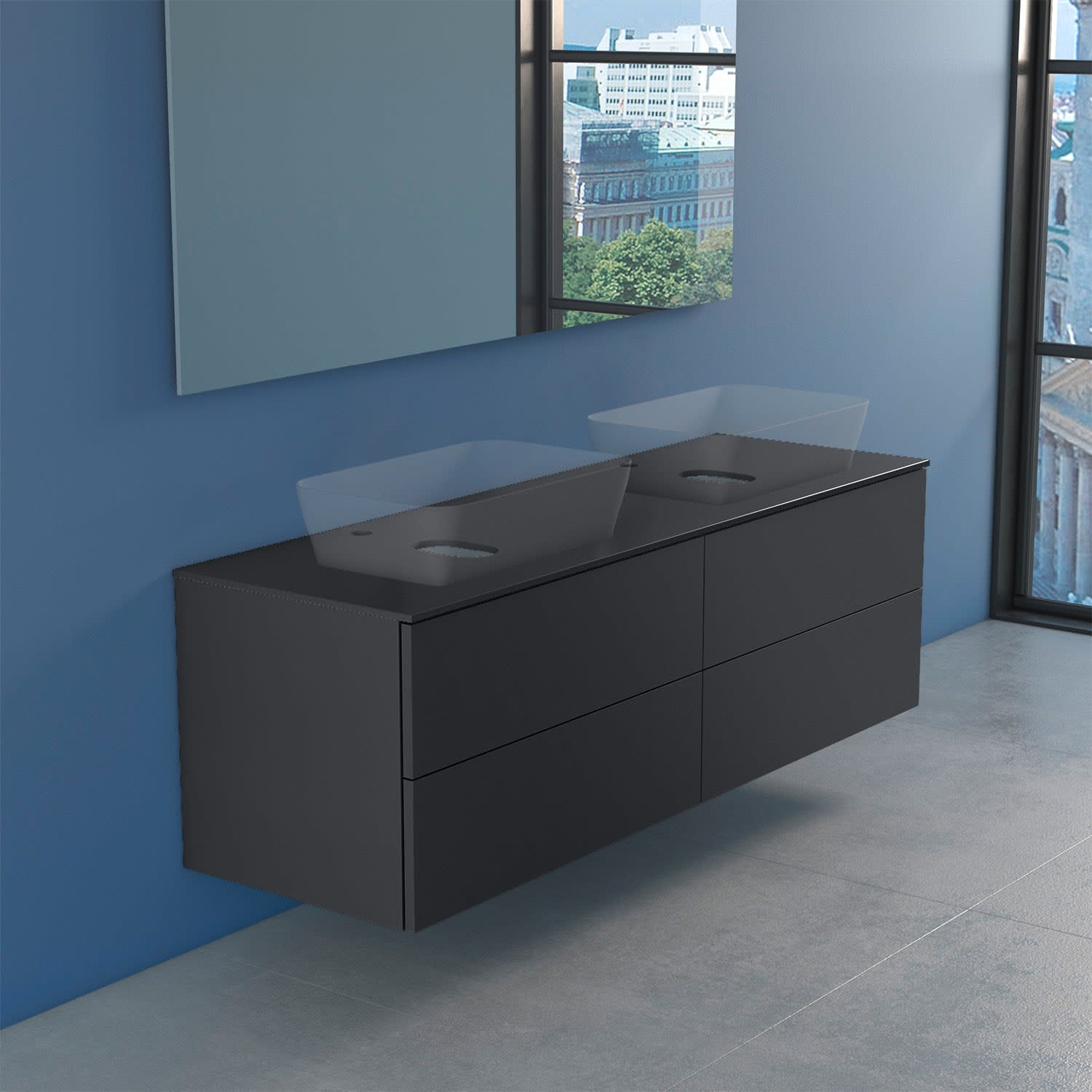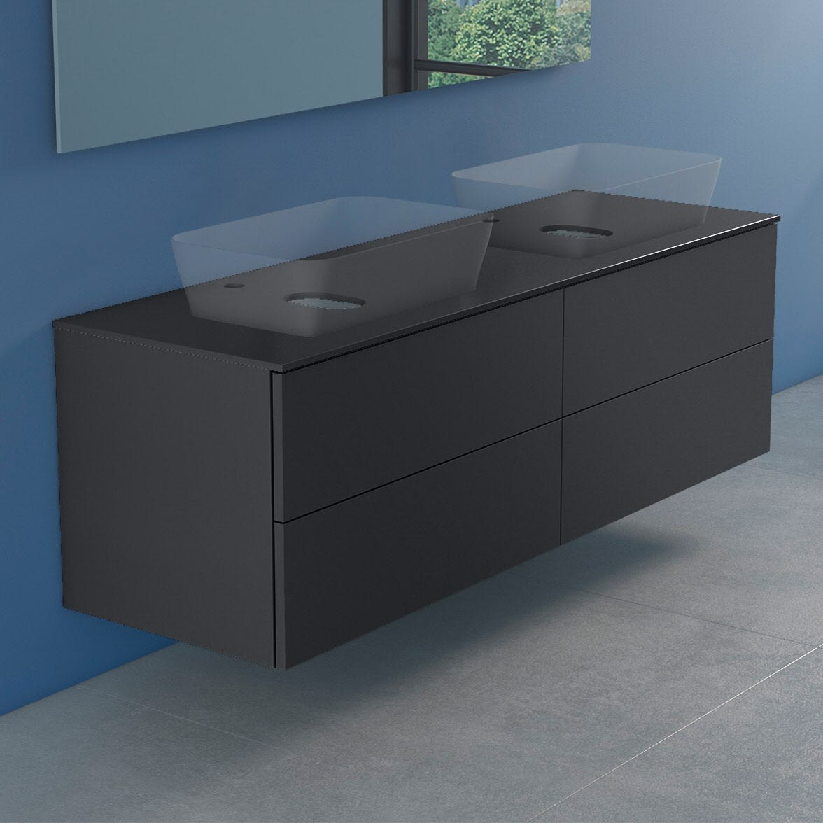 progettobagno Elba Modular Glass Doppel- Waschtischkonsole 160 cm mit Hahnlochbohrung