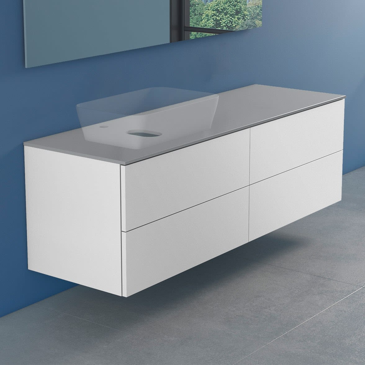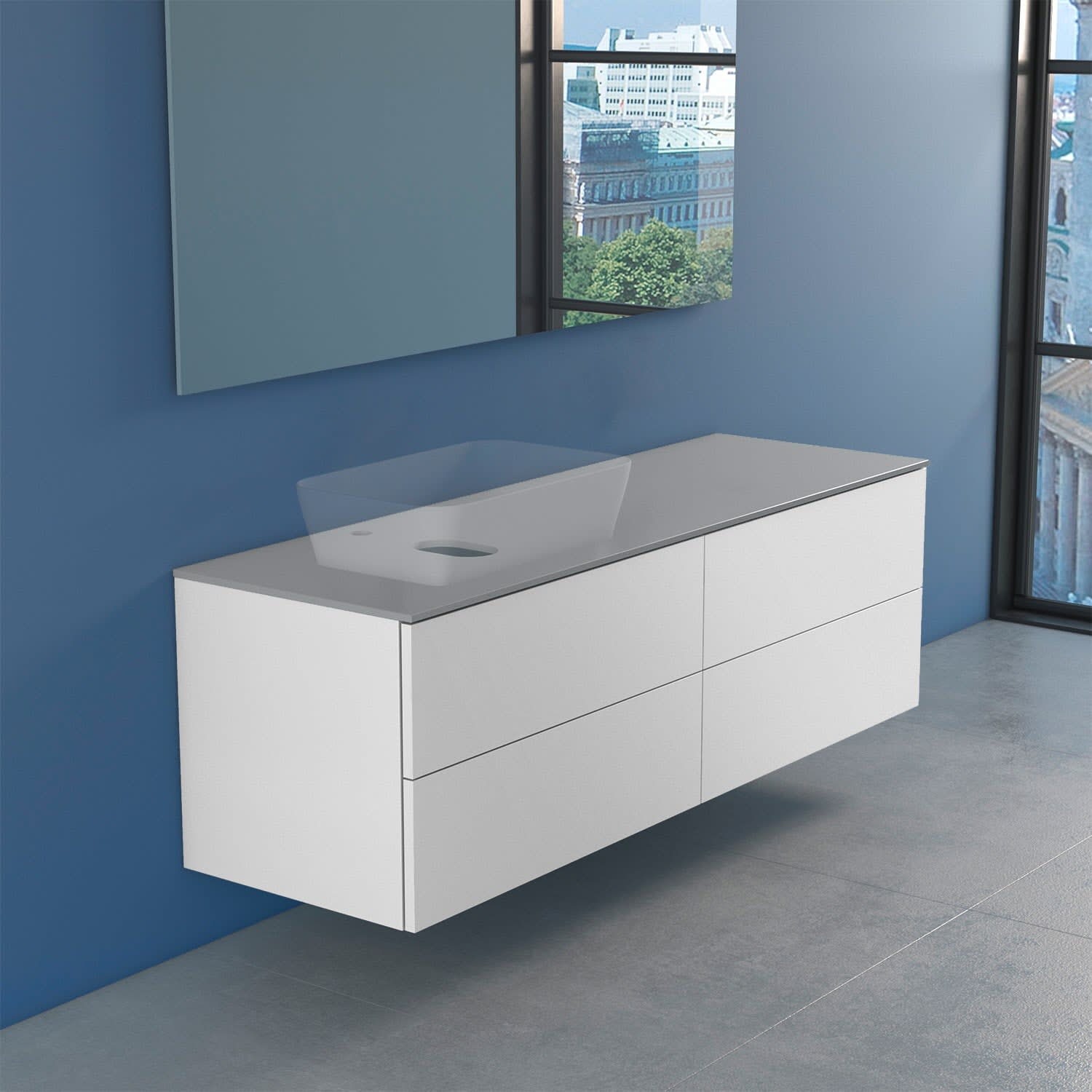 progettobagno Elba Modular Glass, Ausführung links Waschtischkonsole 160 cm mit Hahnlochbohrung